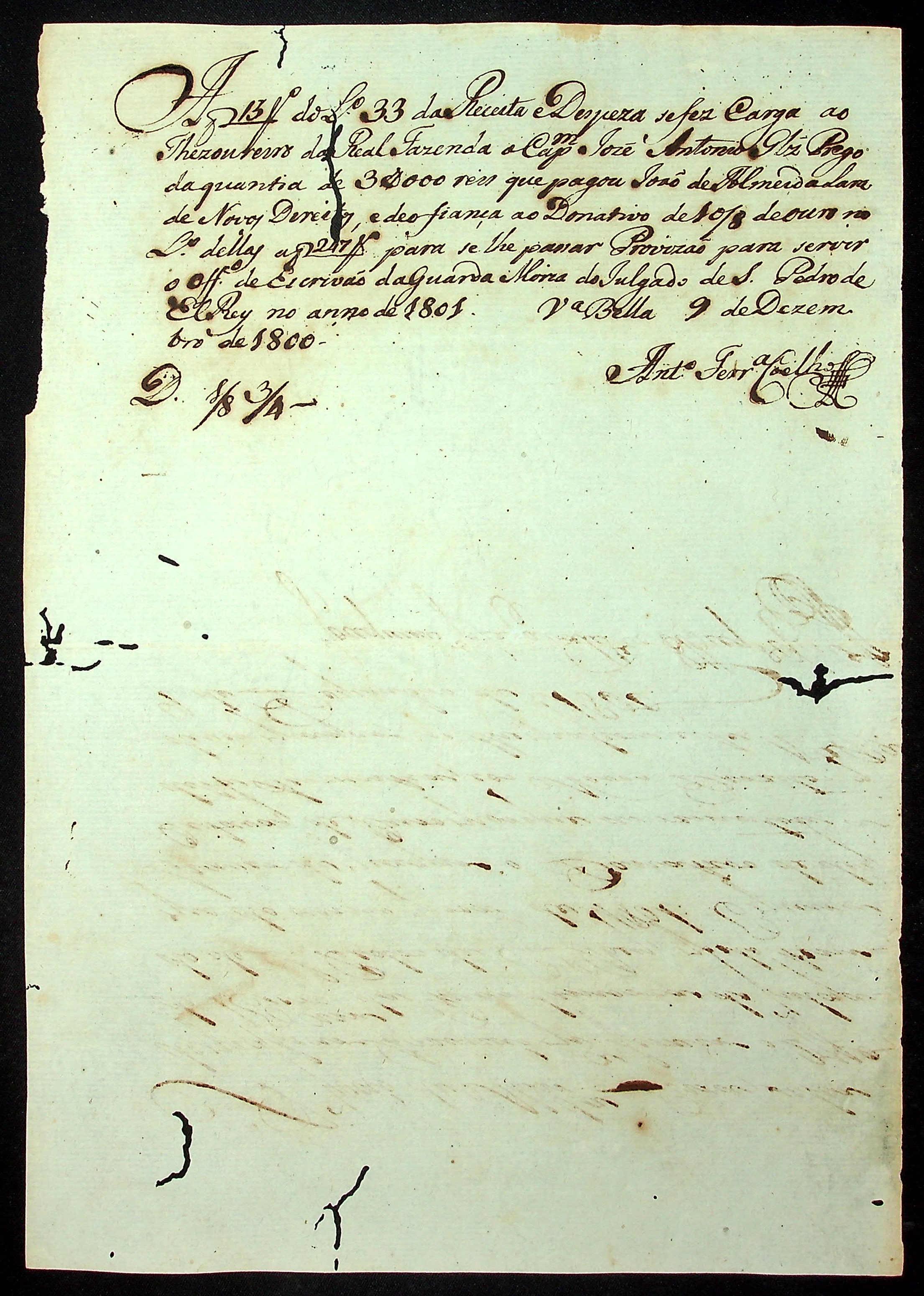 REQUERIMENTO de João de Almeida Lara ao [Governador e Capitão General da Capitania de Mato Grosso Caetano Pinto de Miranda Montenegro] pelo ofício de Escrivão da Guardamoria do Julgado de São Pedro Del Rei.