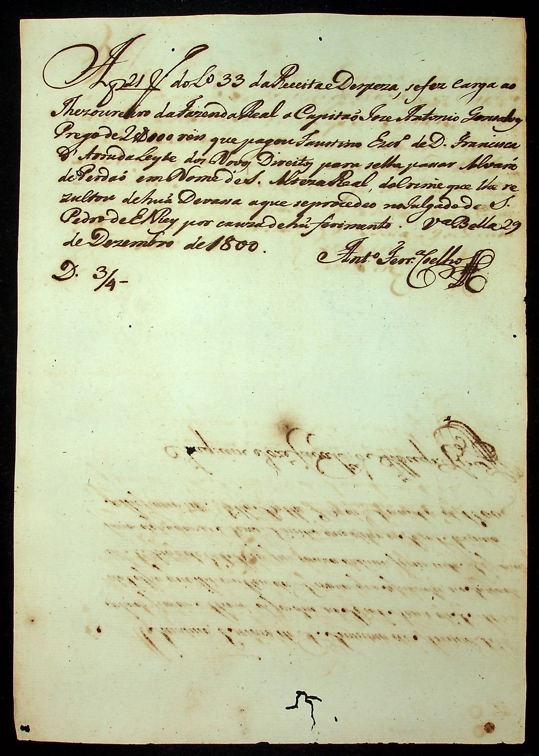 REQUERIMENTO de Francisco de Paula e Araújo e Faustino escravo de Dona Francisca de Arruda Leite ao [Governador e Capitão General da Capitania de Mato Grosso Caetano Pinto de Miranda Montenegro].