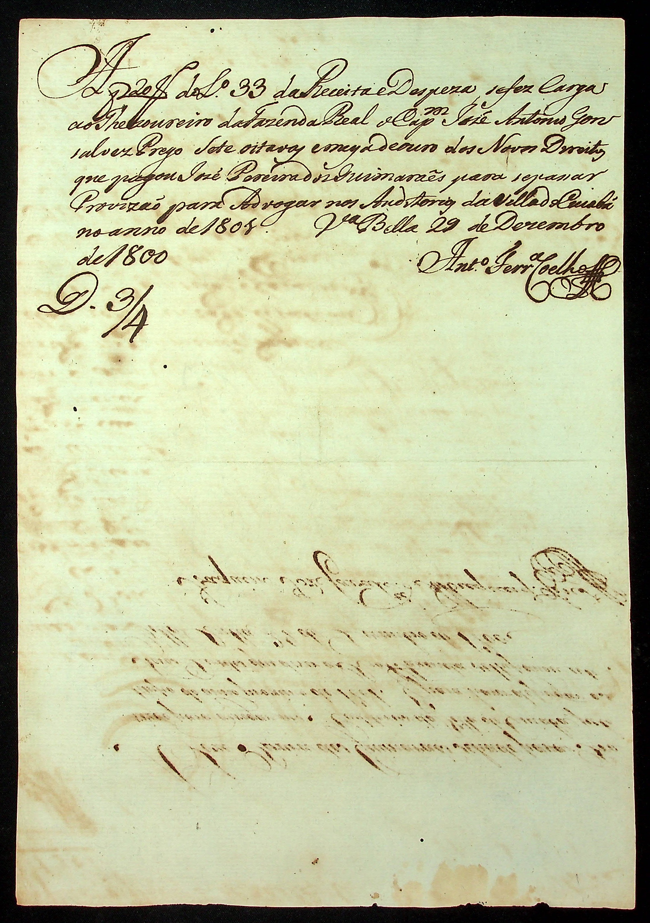REQUERIMENTO de José Pereira dos Guimarães ao [Governador e Capitão General da Capitania de Mato Grosso Caetano Pinto de Miranda Montenegro] para advogar nos Auditórios da Vila do Cuiabá.
