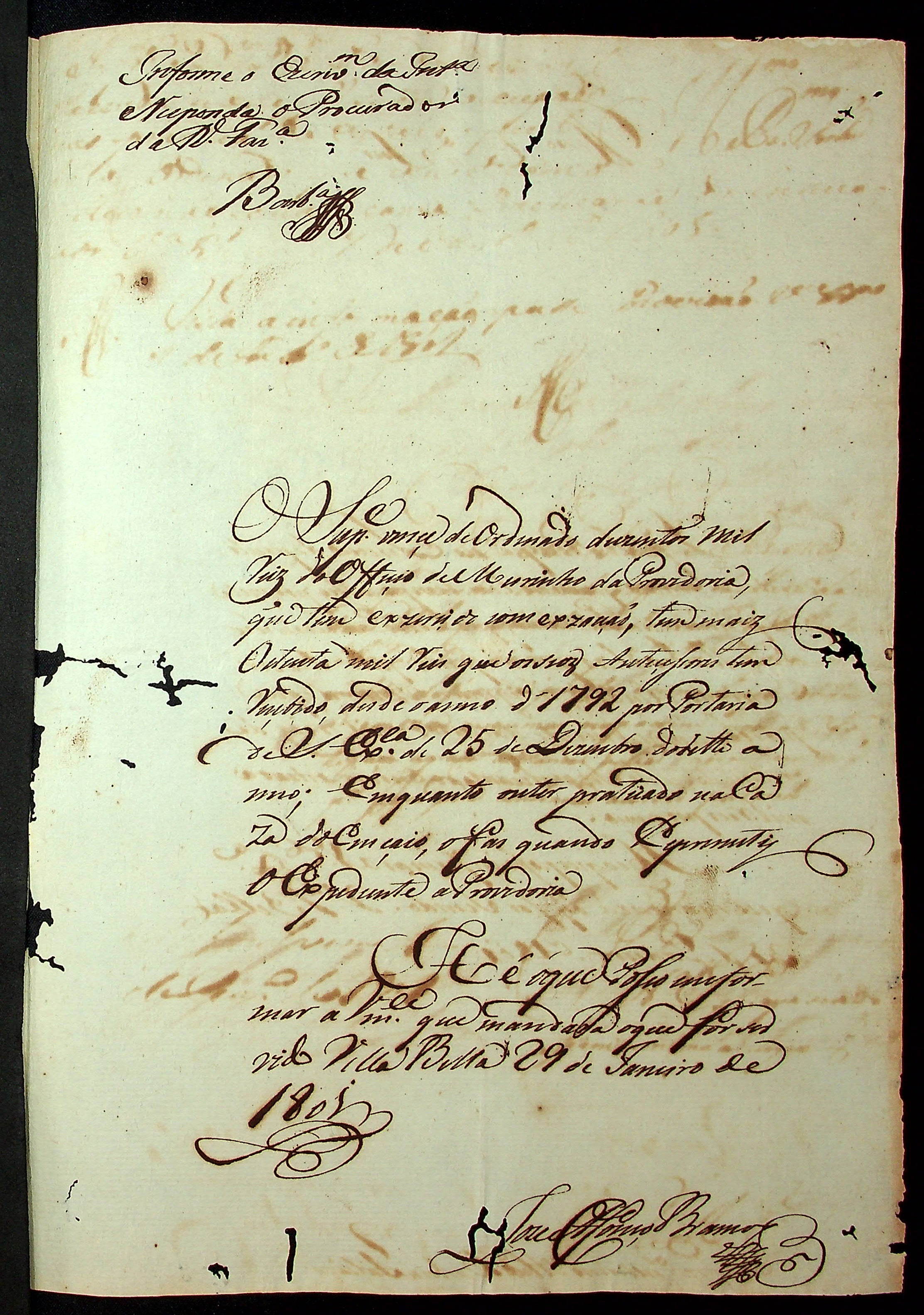 REQUERIMENTO de José Francisco da Cruz ao [Governador e Capitão General da Capitania de Mato Grosso Caetano Pinto de Miranda Montenegro] pelo ofício de meirinho da Fazenda e praticante de ensaiador da Real Casa de Fundição.