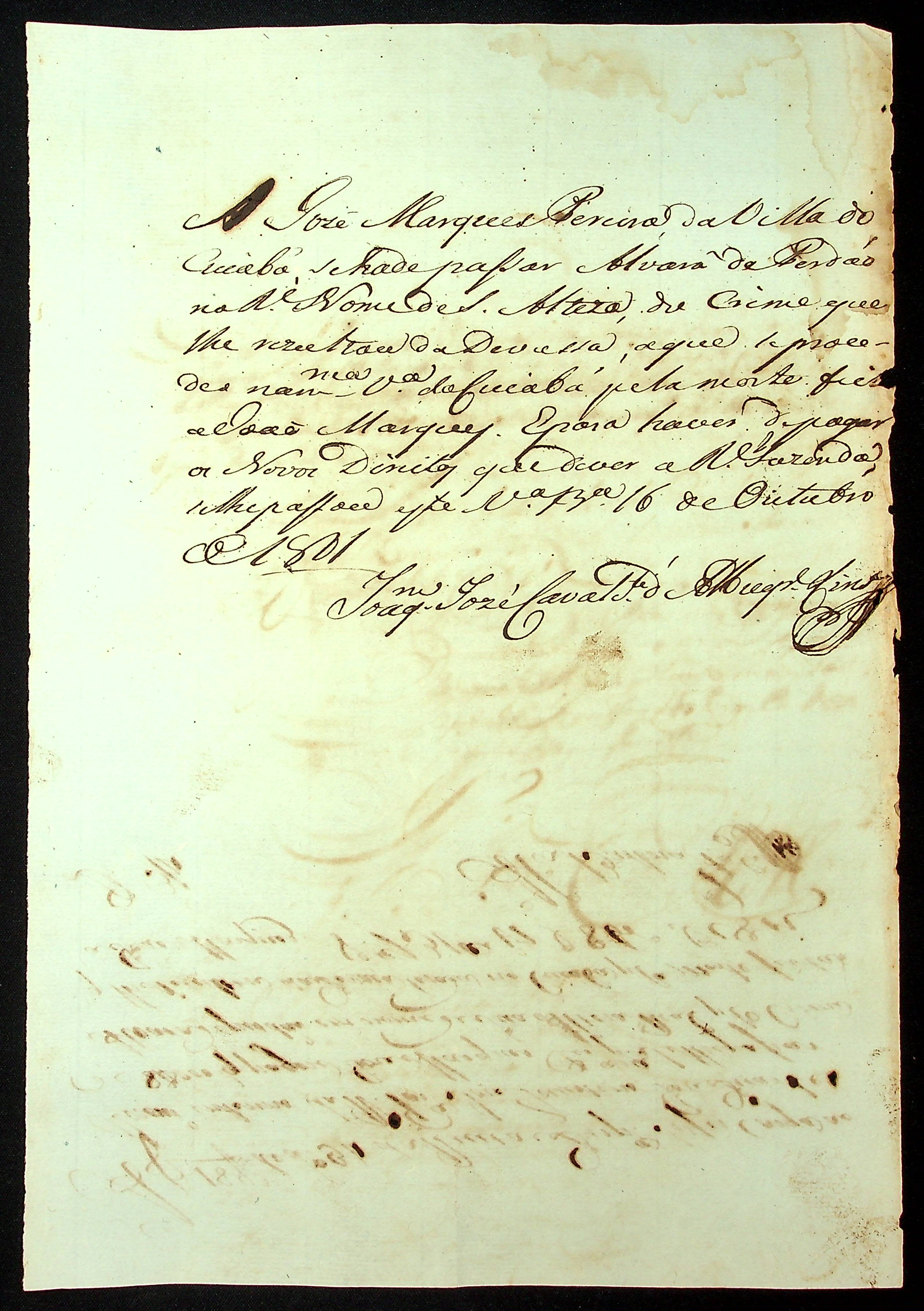 REQUERIMENTO do Soldado da Cavalaria José Marques Pereira ao [Governador e Capitão General da Capitania de Mato Grosso] Caetano Pinto de Miranda Montenegro.