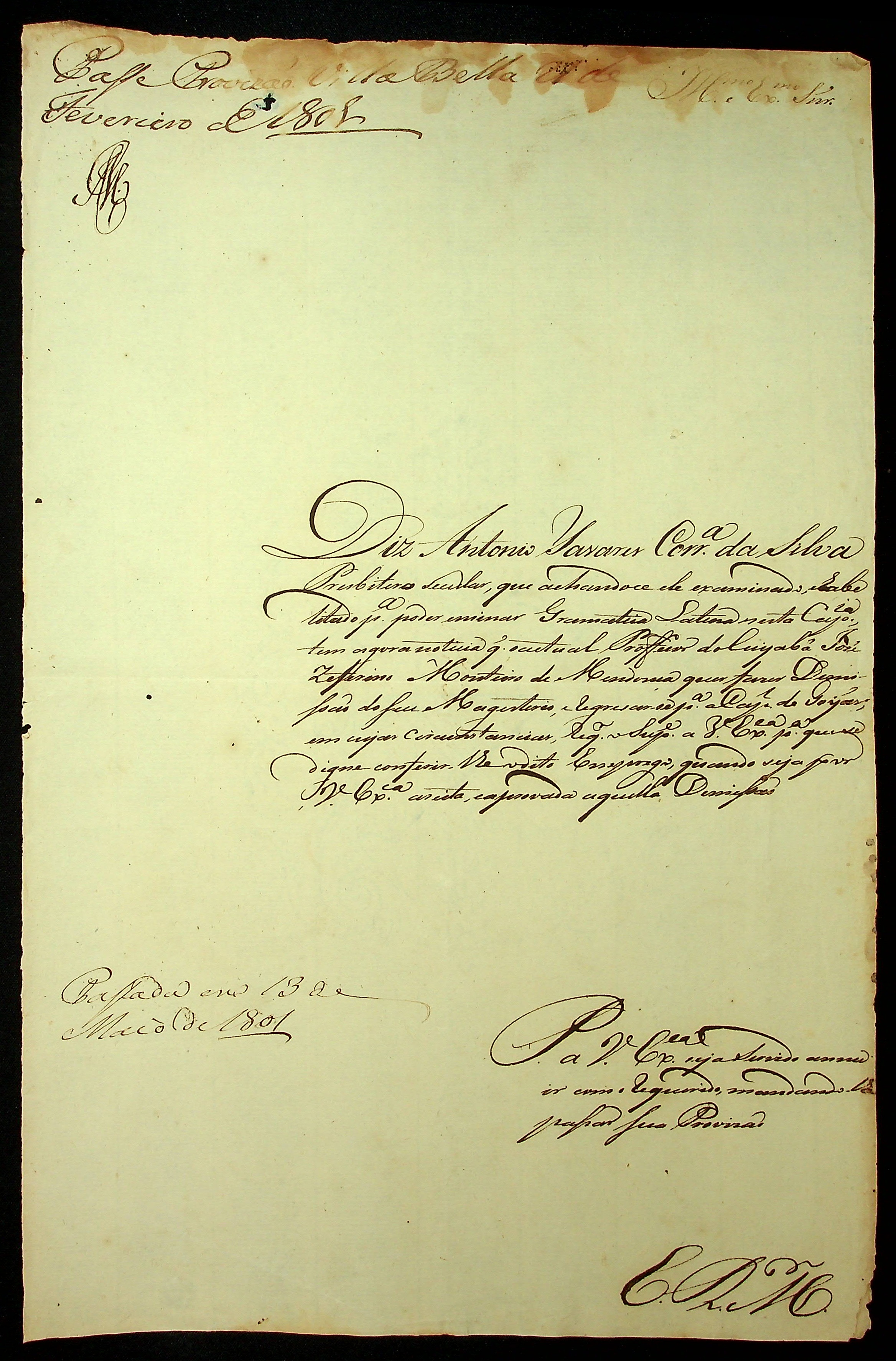 REQUERIMENTO de Antônio Soares Correa da Silva ao [Governador e Capitão General da Capitania de Mato Grosso] Caetano Pinto de Miranda Montenegro para poder ensinar gramatica latina.