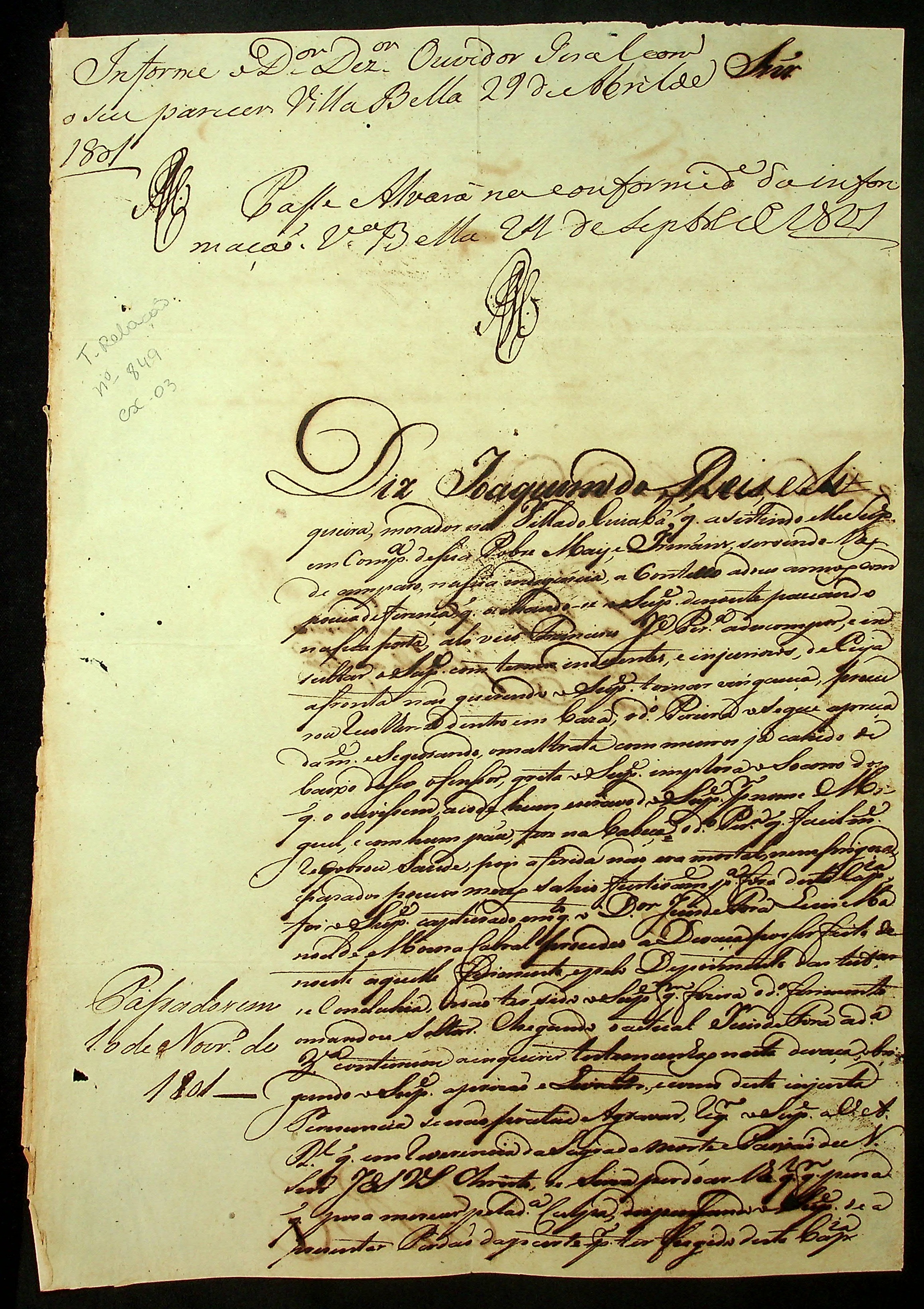 REQUERIMENTO de Joaquim dos Reis e Siqueira ao [Governador e Capitão General da Capitania de Mato Grosso] Caetano Pinto de Miranda Montenegro.
