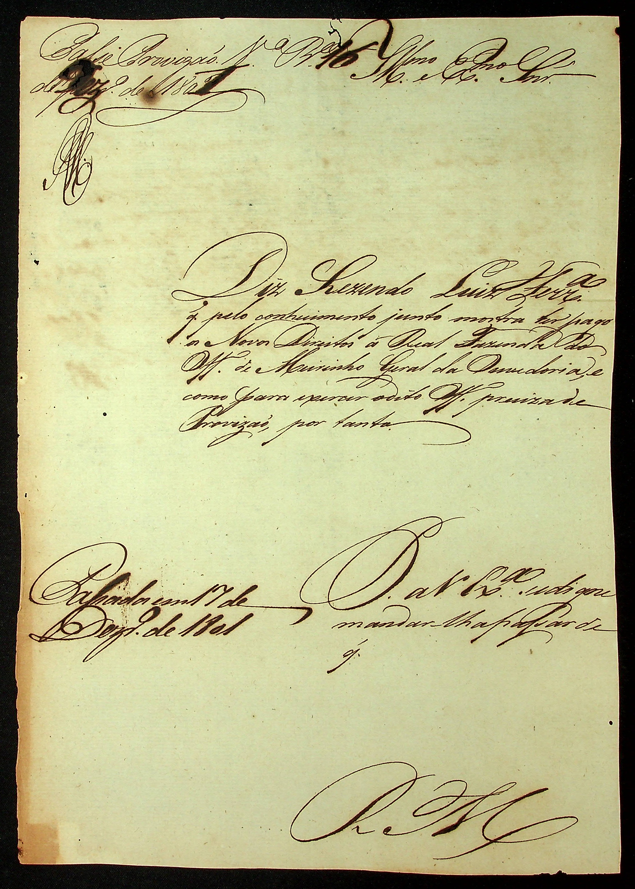 REQUERIMENTO de [Rezende] Luís Ferreira ao [Governador e Capitão General da Capitania de Mato Grosso Caetano Pinto de Miranda Montenegro] pelo ofício de meirinho da Ouvidoria Geral.