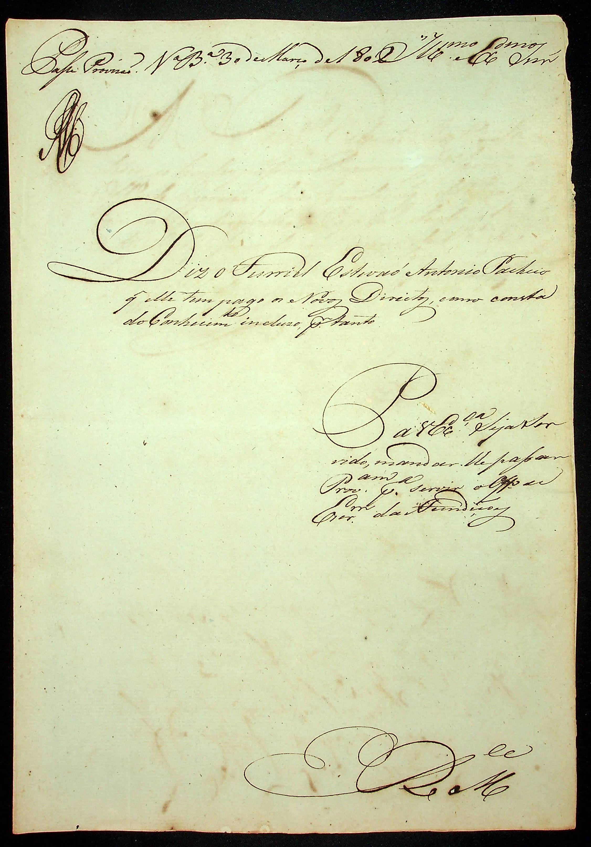 REQUERIMENTO do Furriel Estevão Antônio Pacheco ao [Governador e Capitão General da Capitania de Mato Grosso Caetano Pinto de Miranda Montenegro] pelo ofício de Escrivão da Real Casa de Fundição.