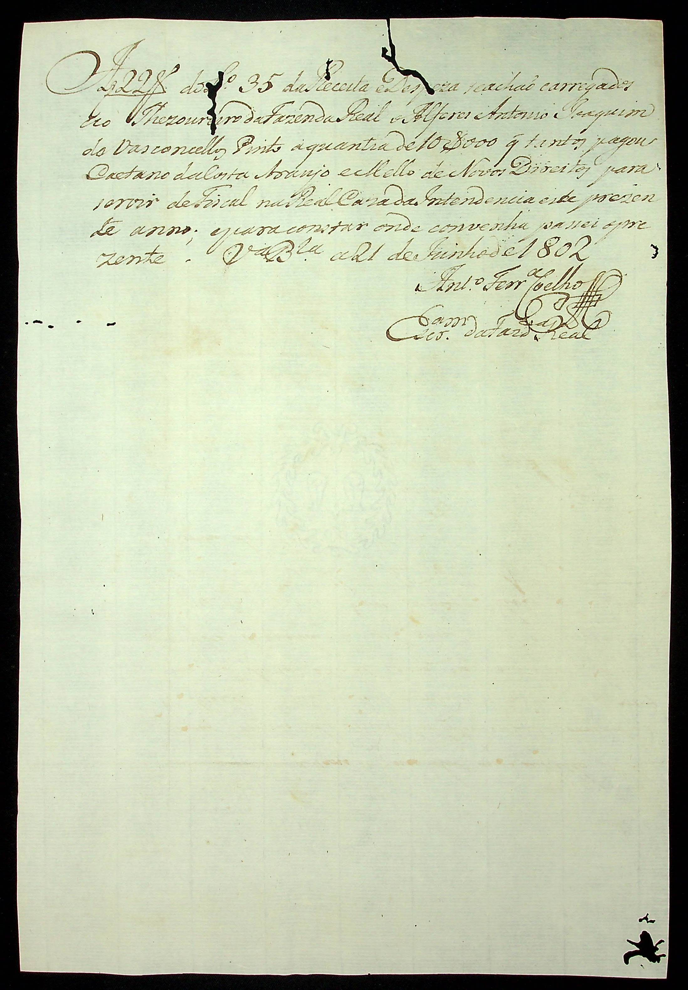REQUERIMENTO de Caetano da Costa Araújo e Mello ao [Governador e Capitão General da Capitania de Matogrosso Caetano Pinto de Miranda Montenegro] pelo ofício de Fiscal da Intendência e Provedoria da Real Fazenda.