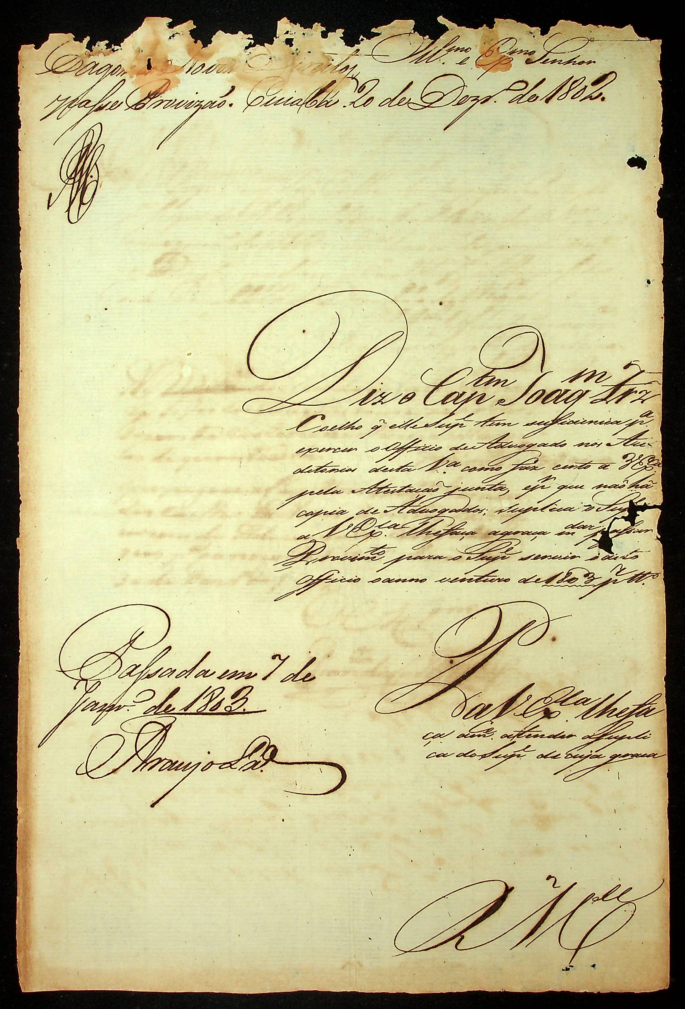 REQUERIMENTO do Capitão Joaquim Fernandes Coelho ao [Governador e Capitão General da Capitania de Mato Grosso Caetano Pinto de Miranda Montenegro] para advogar nos Auditórios de [Vila do Cuiabá].
