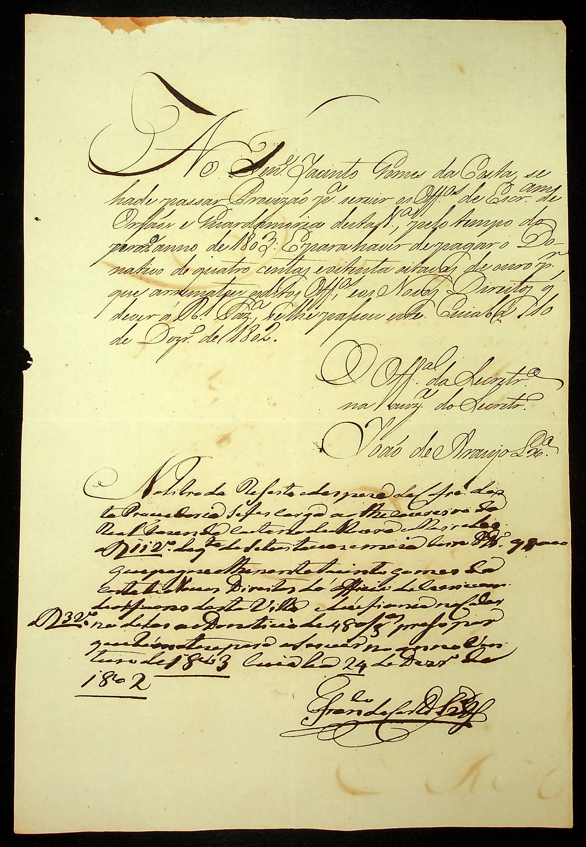REQUERIMENTO do Tenente Jacinto Gomes da Costa ao [Governador e Capitão General da Capitania de Mato Grosso Caetano Pinto de Miranda Montenegro] pelo ofício de Escrivão dos Órfãos e Guardamoria da [Vila do Cuiabá].
