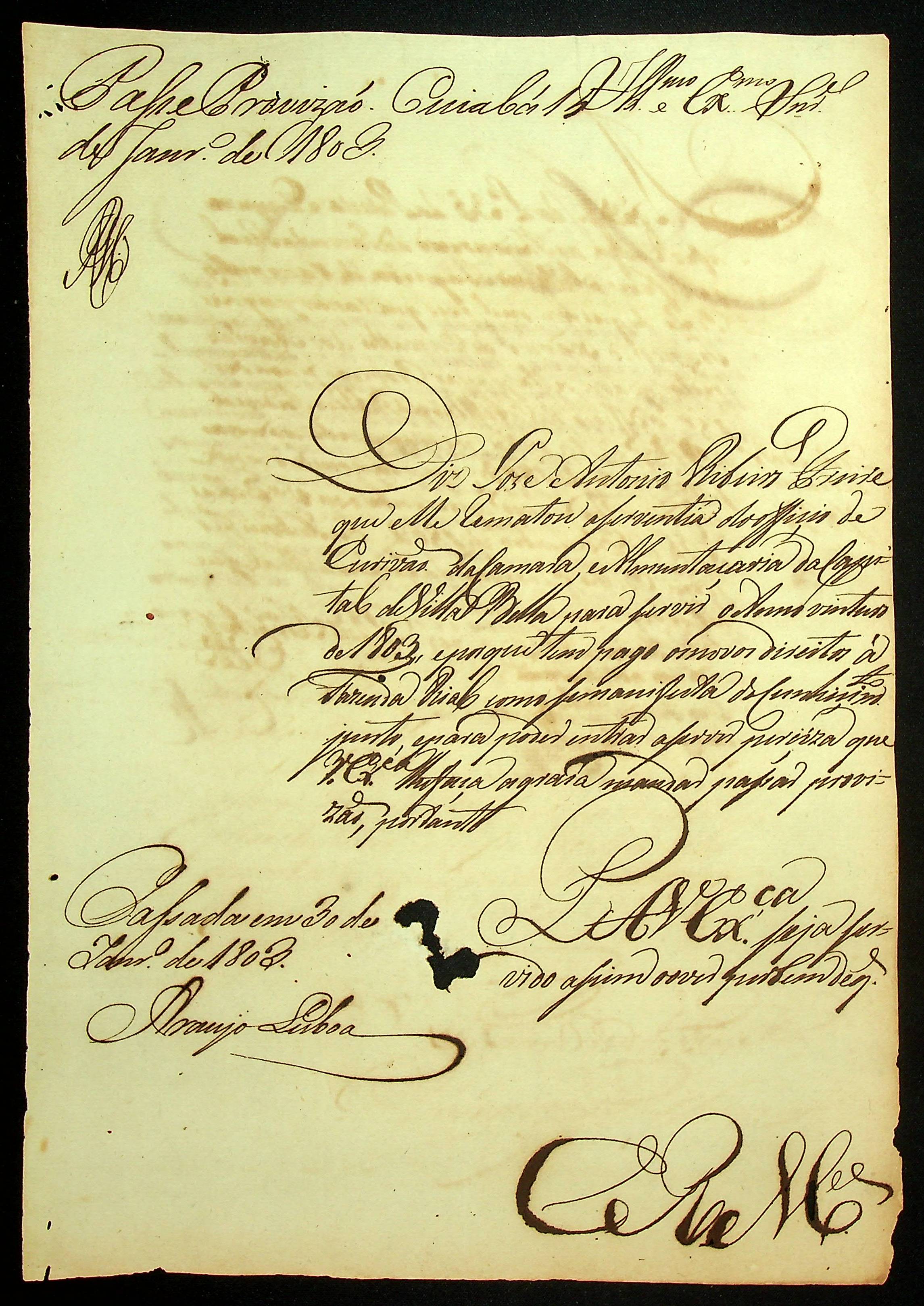 REQUERIMENTO de José Antônio Ribeiro Freire ao [Governador e Capitão General da Capitania de Mato Grosso Caetano Pinto de Miranda Montenegro] pelo ofício de Escrivão da Câmara e Almotaçaria da Vila Bela.