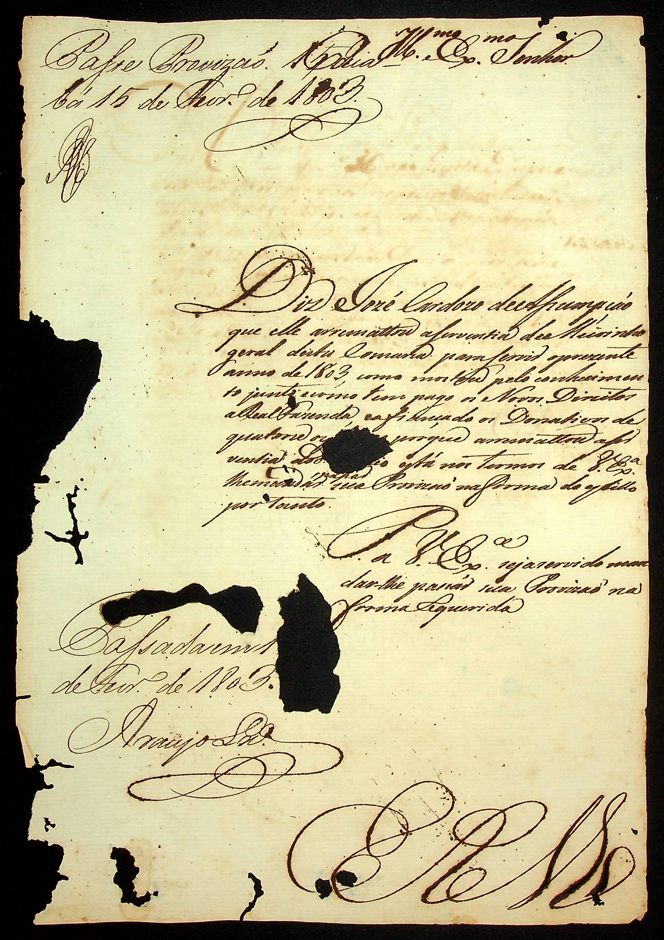 REQUERIMENTO de José Cardoso de Assunção ao [Governador e Capitão General da Capitania de Mato Grosso Caetano Pinto de Miranda Montenegro] pelo ofício de Meirinho Geral da Comarca.