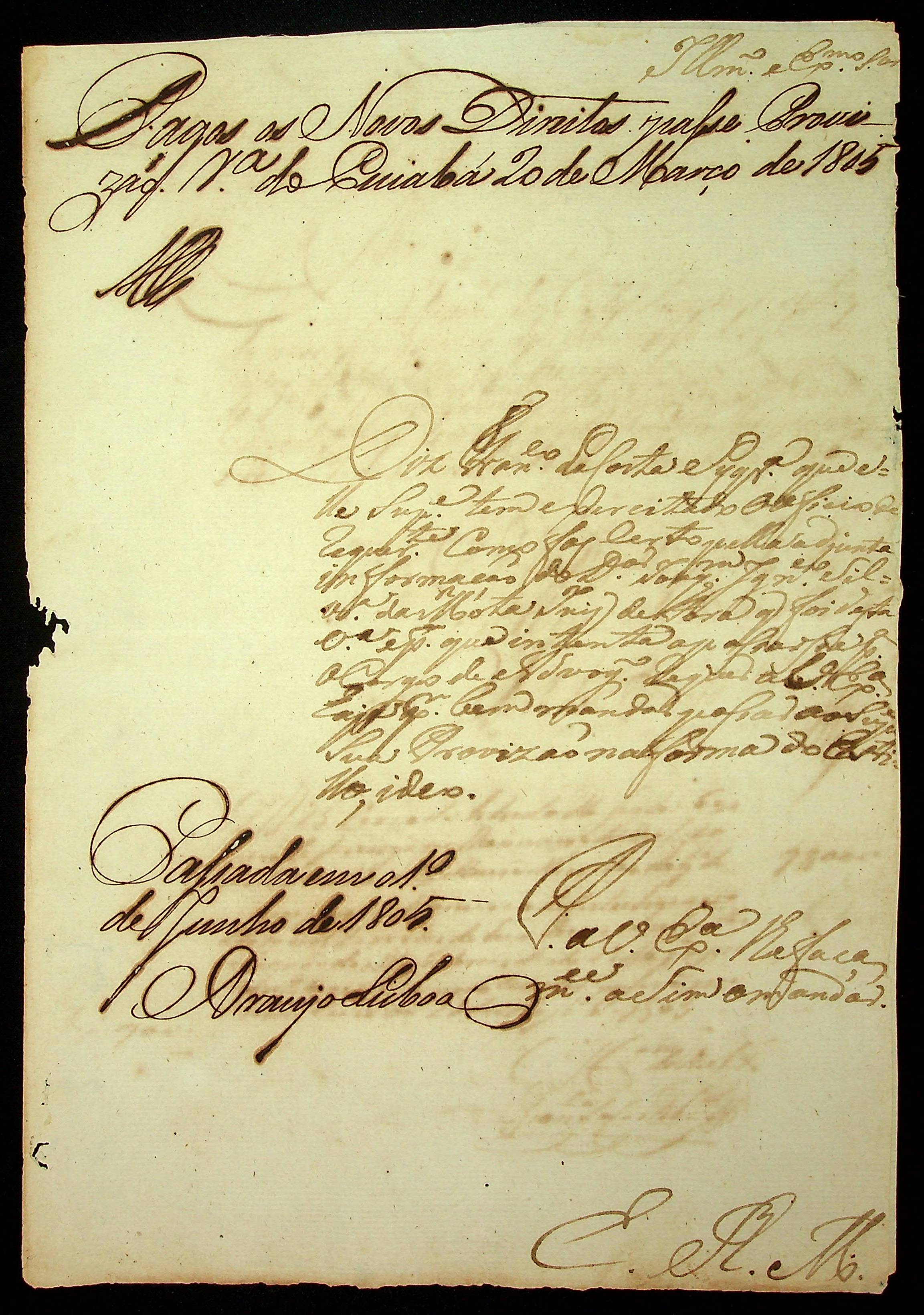 REQUERIMENTO de Francisco da Costa Siqueira ao [Governador e Capitão-General da Capitania de Mato Grosso Manoel Carlos de Abreu e Menezes] para advogar nos Auditórios da Vila do Cuiabá.