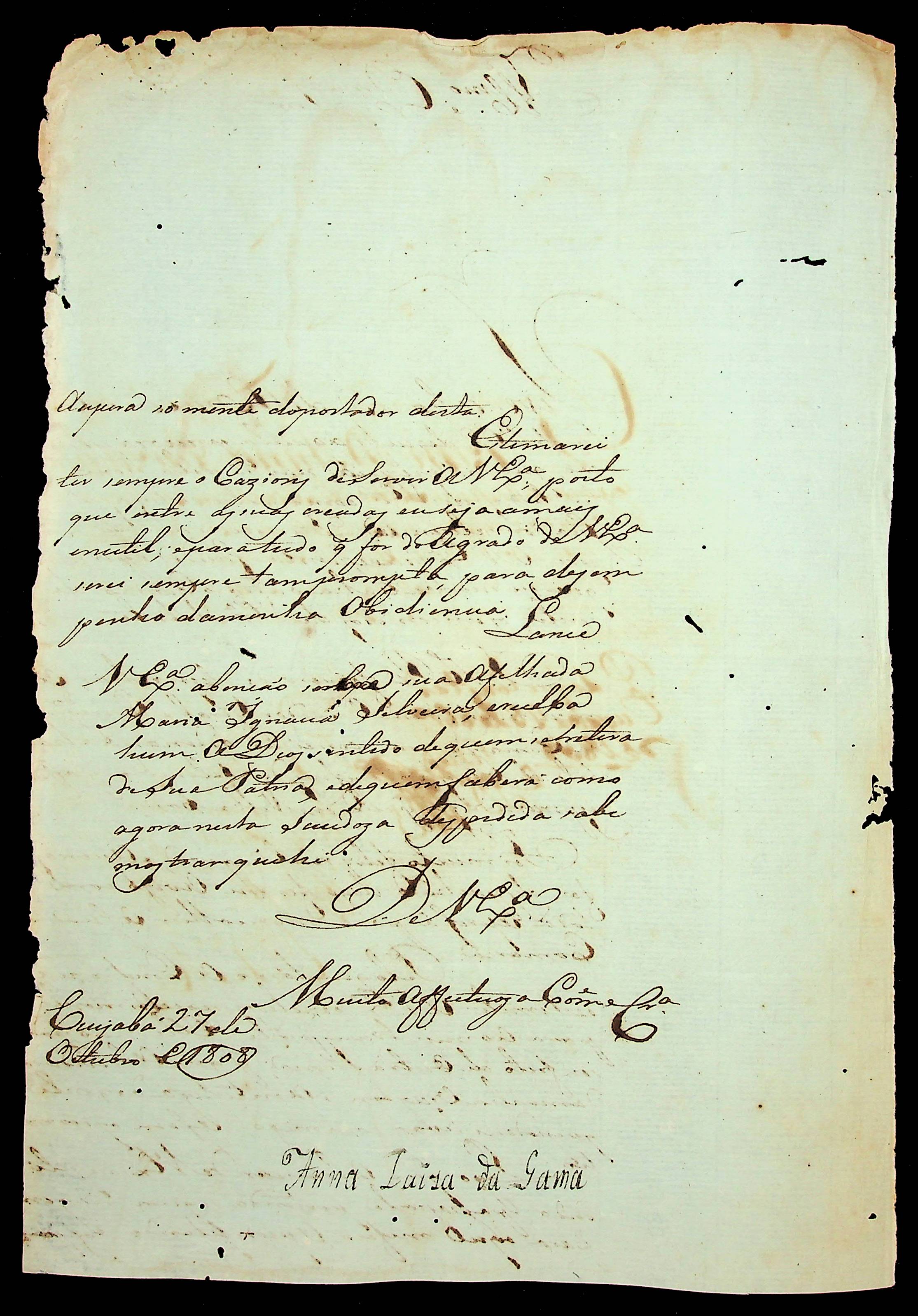 REQUERIMENTO de Ana Luiza da Gama ao [Governador e Capitão-General da Capitania de Mato Grosso João Carlos Augusto D’Oeynhausen e Gravemberg].