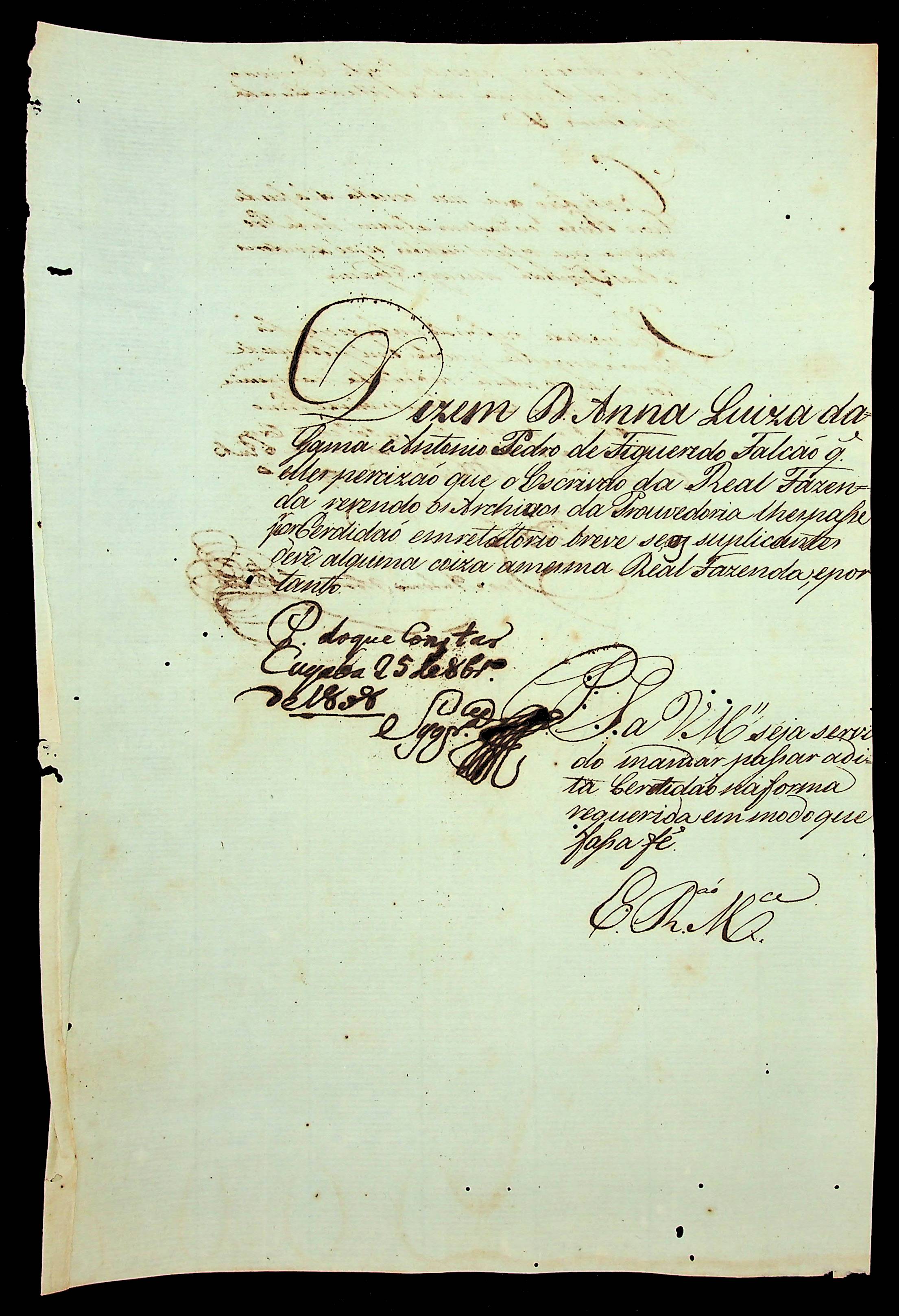 REQUERIMENTO de Ana Luiza da Gama ao [Governador e Capitão-General da Capitania de Mato Grosso João Carlos Augusto D’Oeynhausen e Gravemberg].