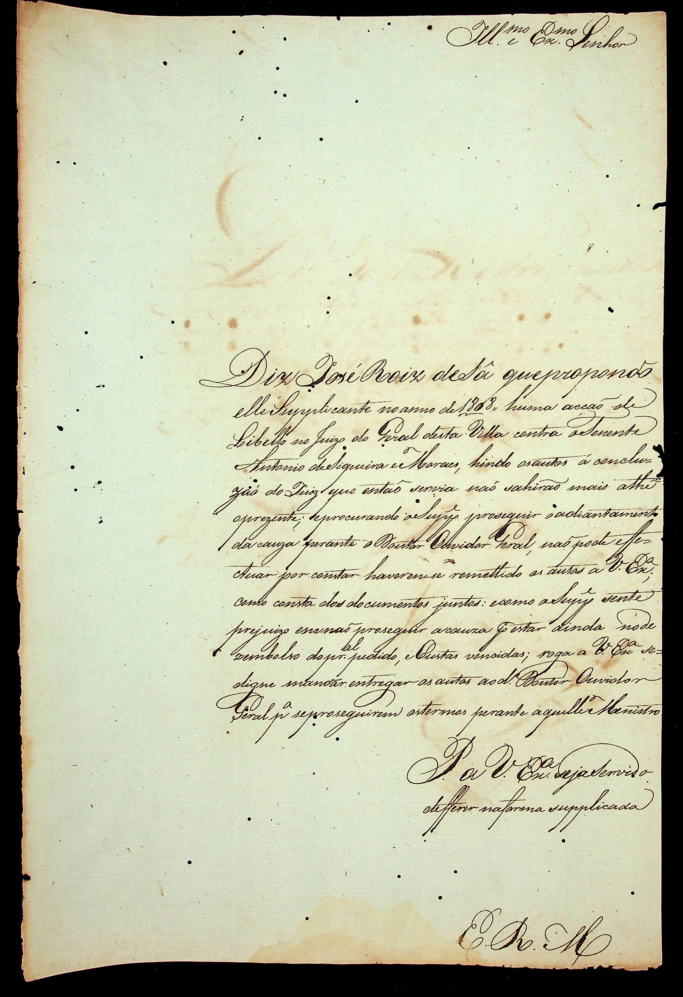 REQUERIMENTO de José Roiz de Sá ao [Governador e Capitão General da Capitania de Mato Grosso João Carlos Augusto d' Oeynhausem e Gravemberg.]