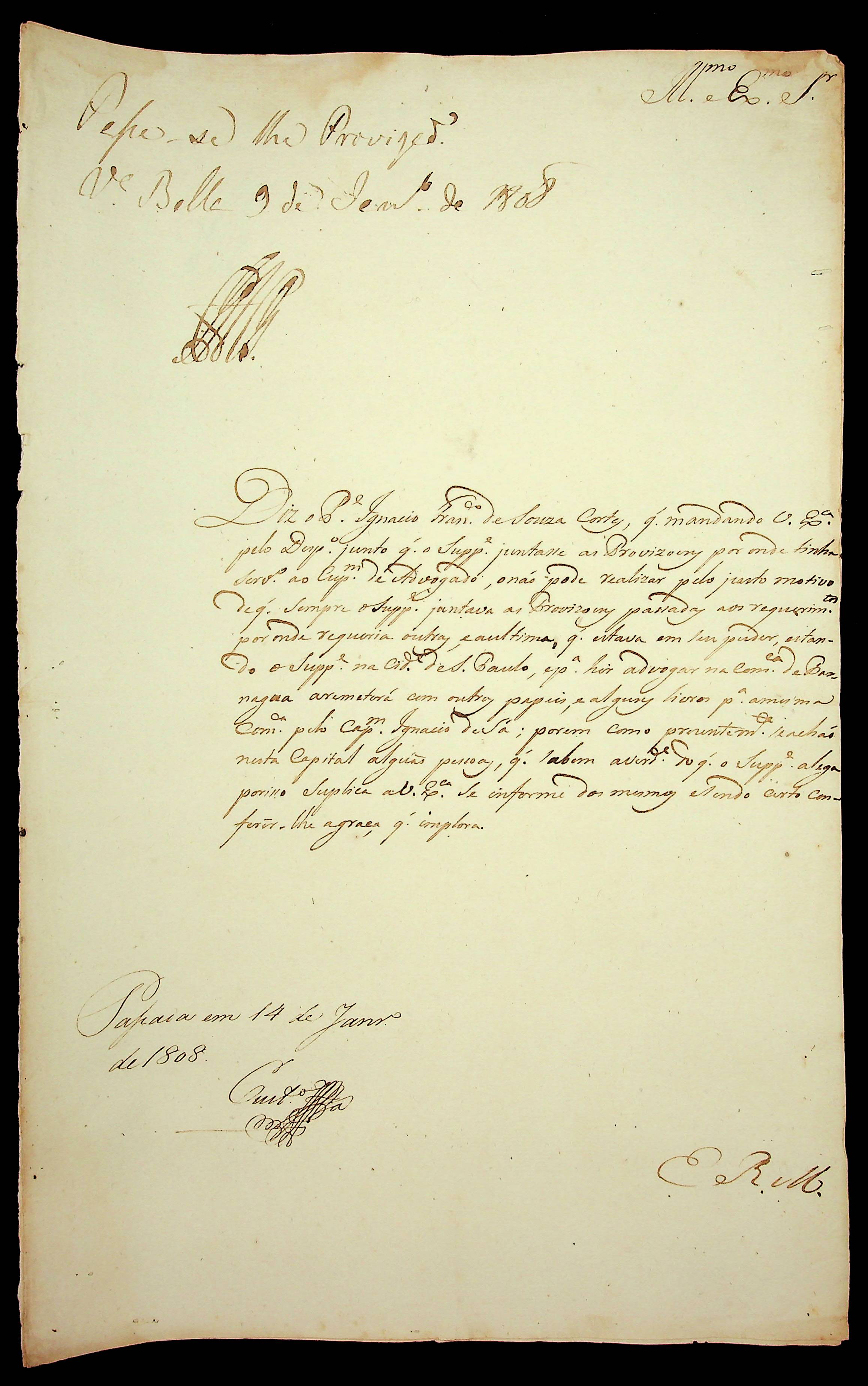 REQUERIMENTO de Pe. Ignácio Francisco de Souza Cortes ao [Governador e Capitão-General da Capitania de Mato Grosso João Carlos Augusto D’Oeynhausen e Gravemberg].