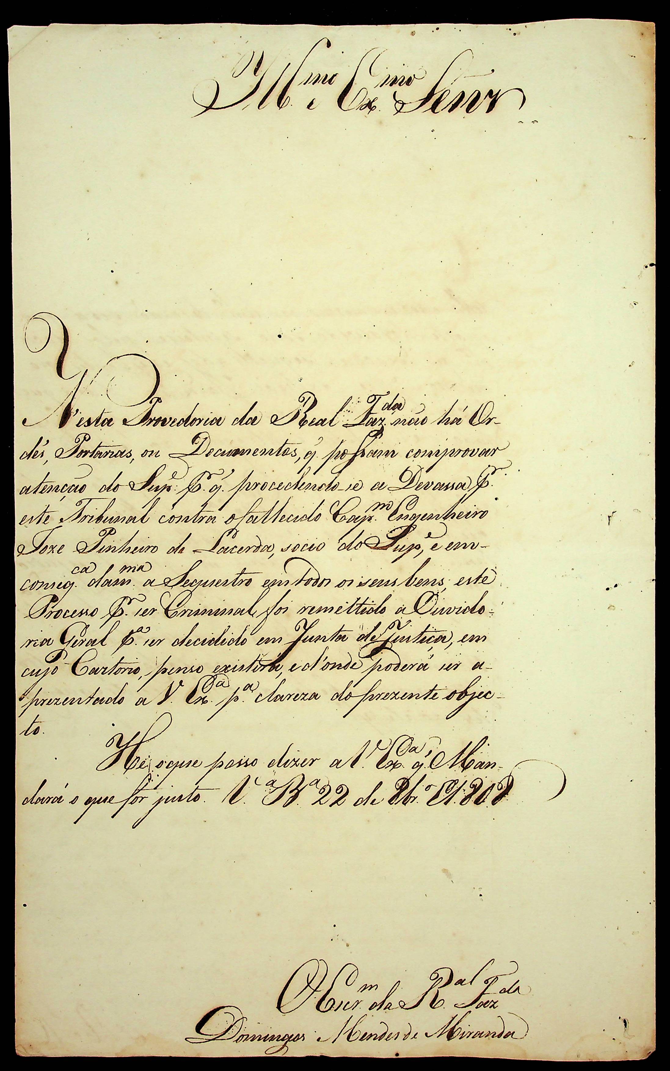 REQUERIMENTO do Alferes José Francisco da Cunha ao [Governador e Capitão-General da Capitania de Mato Grosso João Carlos Augusto D’Oeynhausen e Gravemberg].