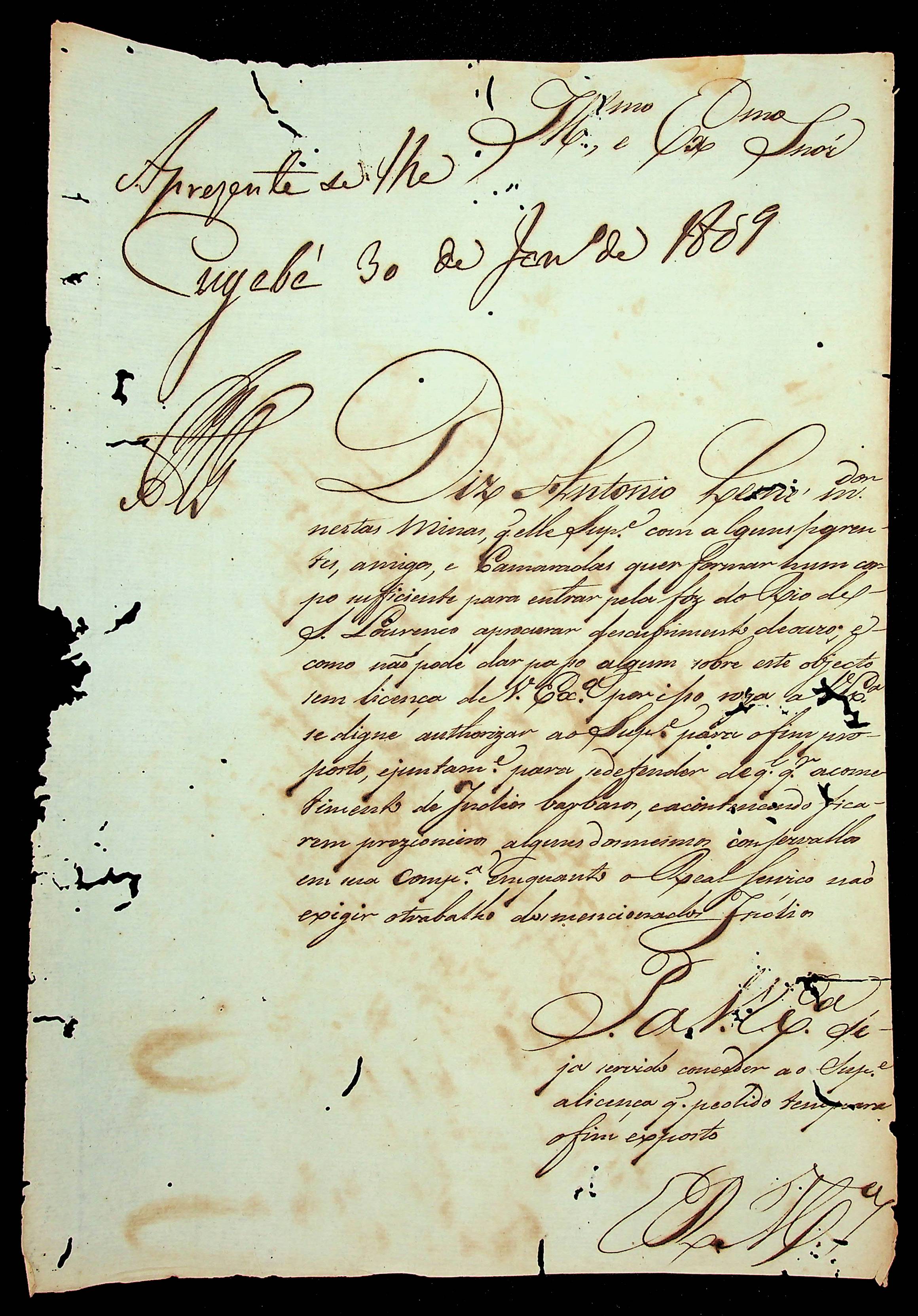 REQUERIMENTO de Antônio Leme ao [Governador e Capitão-General da Capitania de Mato Grosso João Carlos Augusto D’Oeynhausen e Gravemberg].