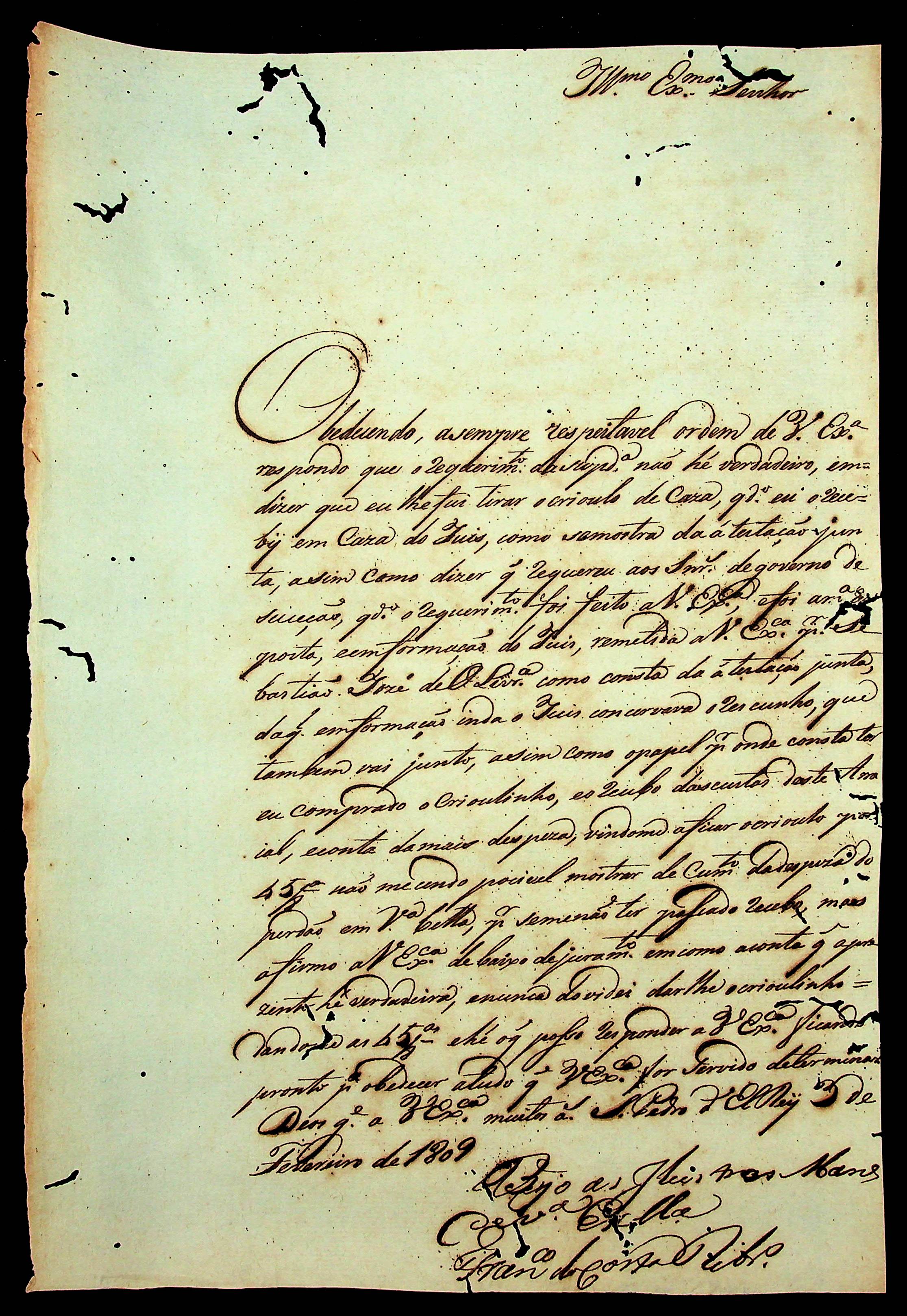 REQUERIMENTO de Domingos de Jesus ao [Governador e Capitão-General da Capitania de Mato Grosso João Carlos Augusto D’Oeynhausen e Gravemberg].