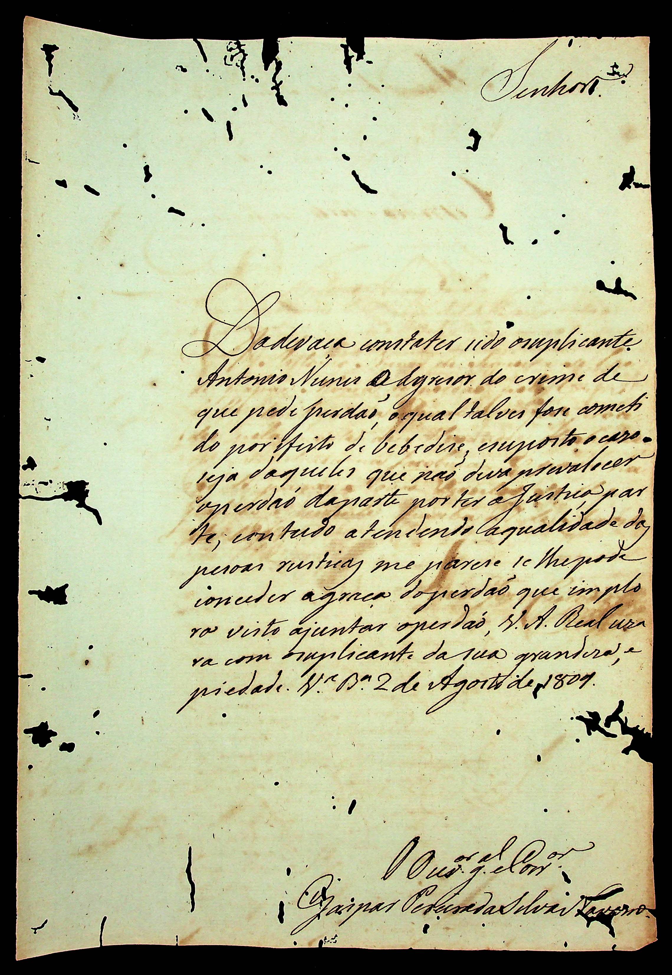 REQUERIMENTO de Antônio Nunes de Siqueira ao [Governador e Capitão-General da Capitania de Mato Grosso João Carlos Augusto D’Oeynhausen e Gravemberg].