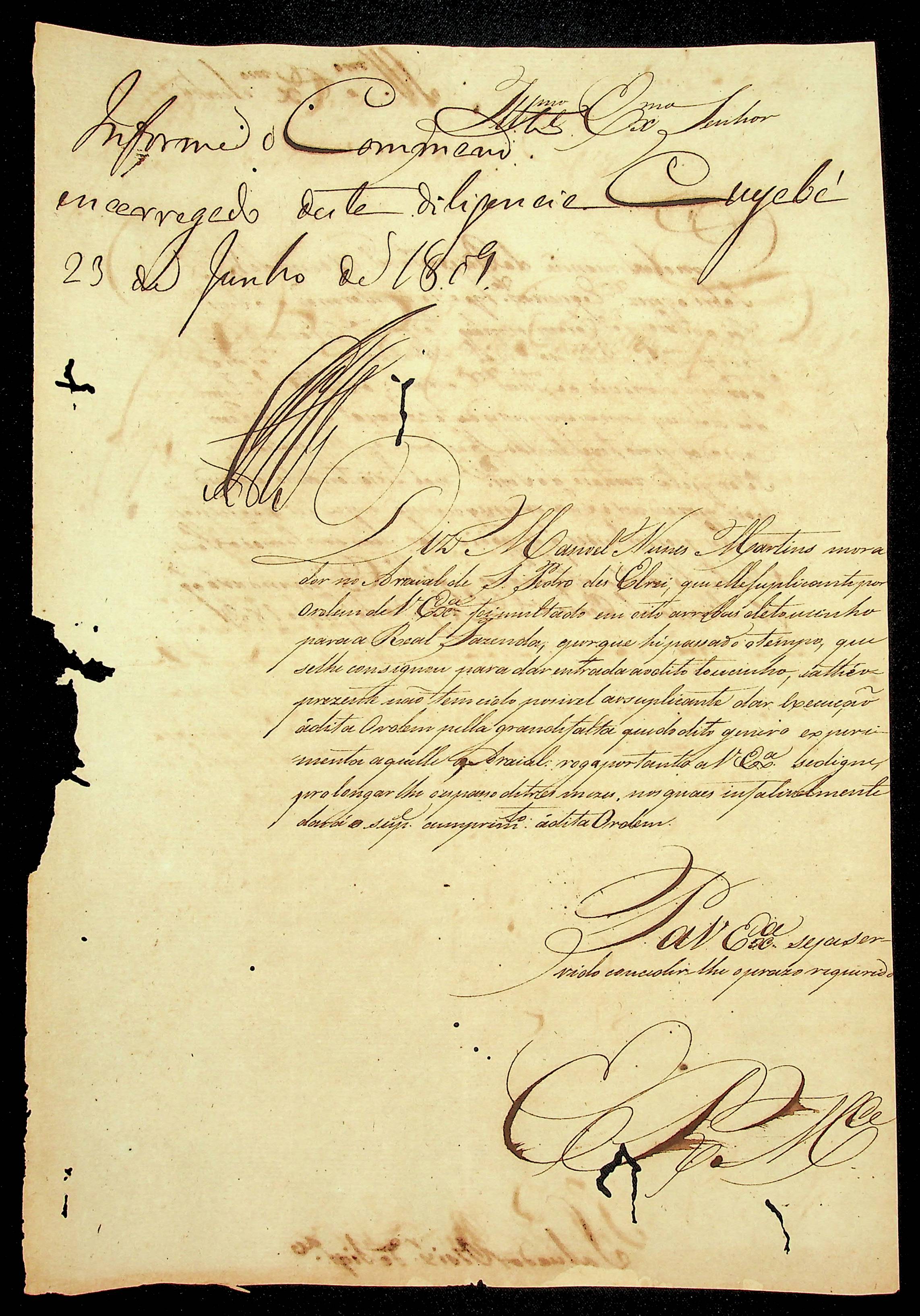 REQUERIMENTO de Manoel Nunes Martins ao [Governador e Capitão-General da Capitania de Mato Grosso João Carlos Augusto D’Oeynhausen e Gravemberg].