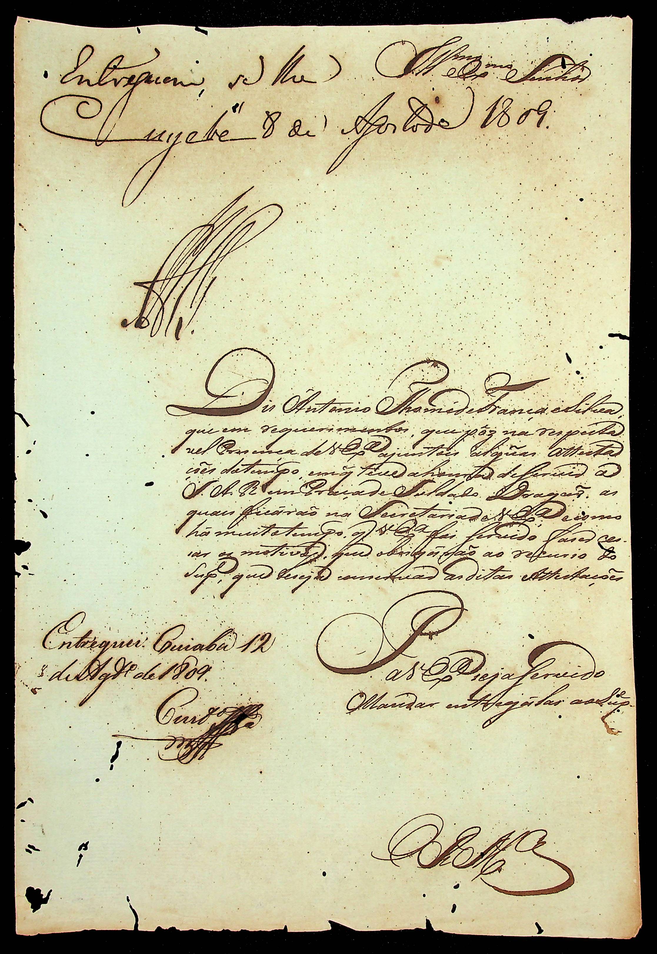 REQUERIMENTO de Antônio Tomé de França e Silva ao [Governador e Capitão-General da Capitania de Mato Grosso João Carlos Augusto D’Oeynhausen e Gravemberg].