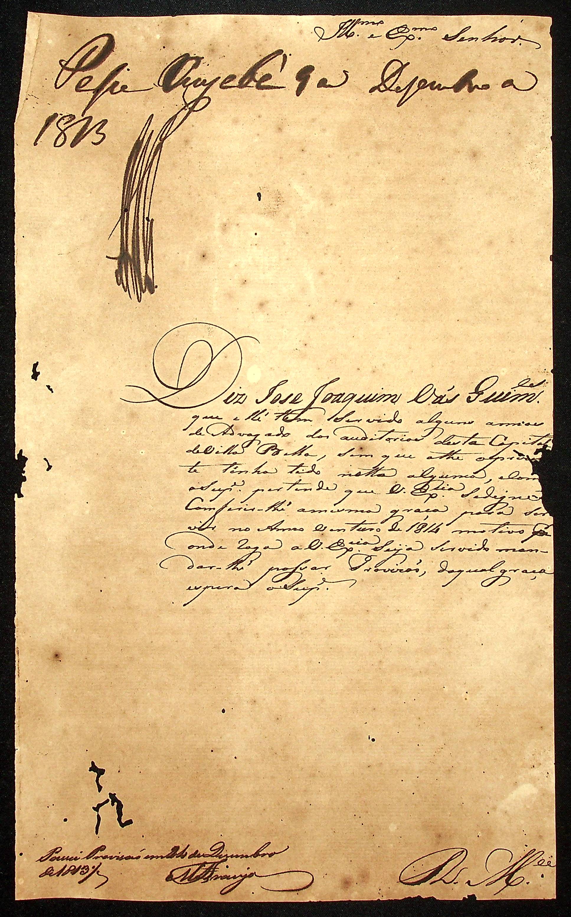 REQUERIMENTO de José Joaquim Vasconcelos Guimarães ao [Governador e Capitão-General da Capitania de Mato Grosso João Carlos Augusto de Oeynhausen e Gravemberg].