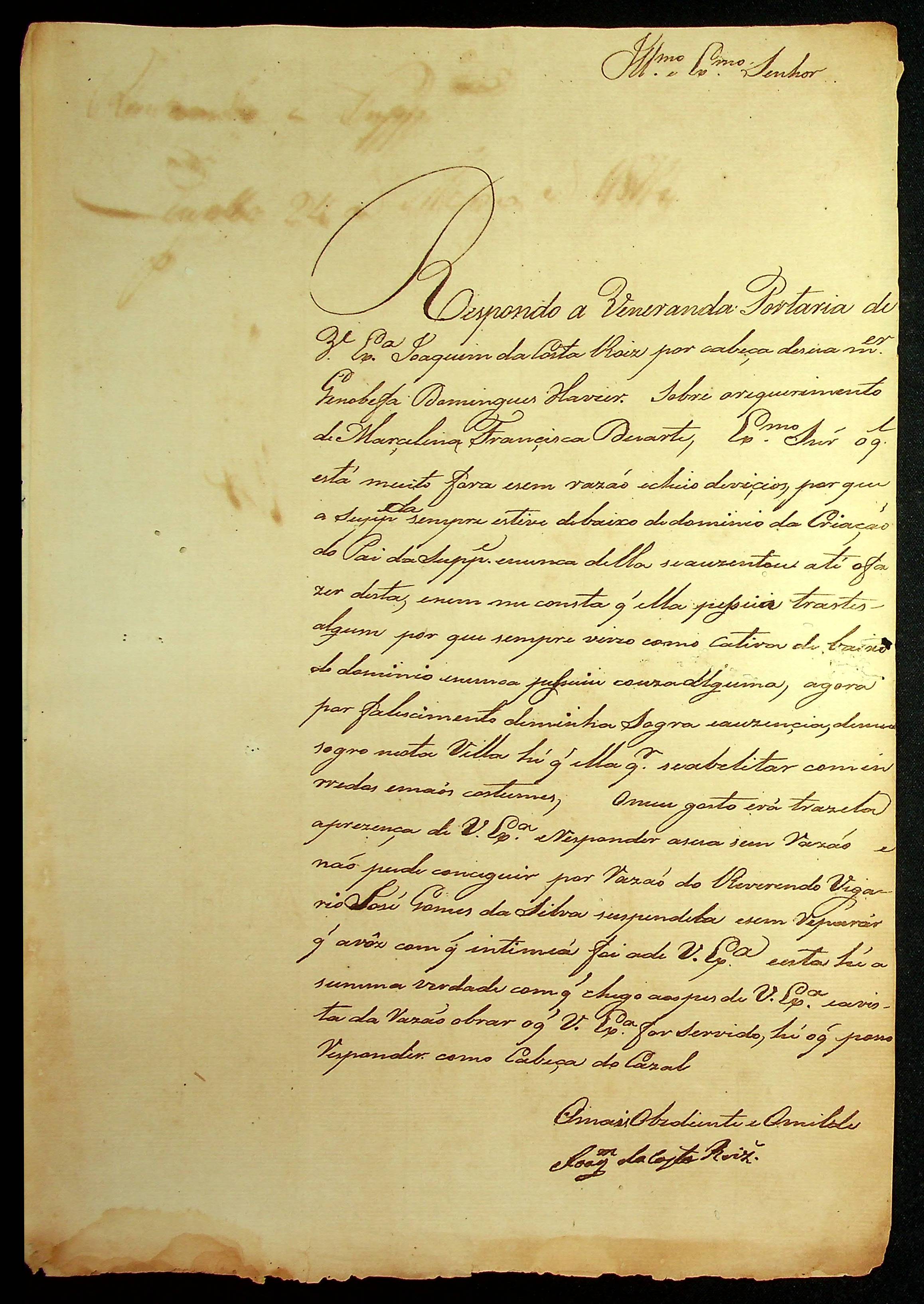 REQUERIMENTO de Marcelina Francisca Duarte ao [Governador e Capitão-General da Capitania de Mato Grosso João Carlos Augusto D´Oeynhausen e Gravemberg].