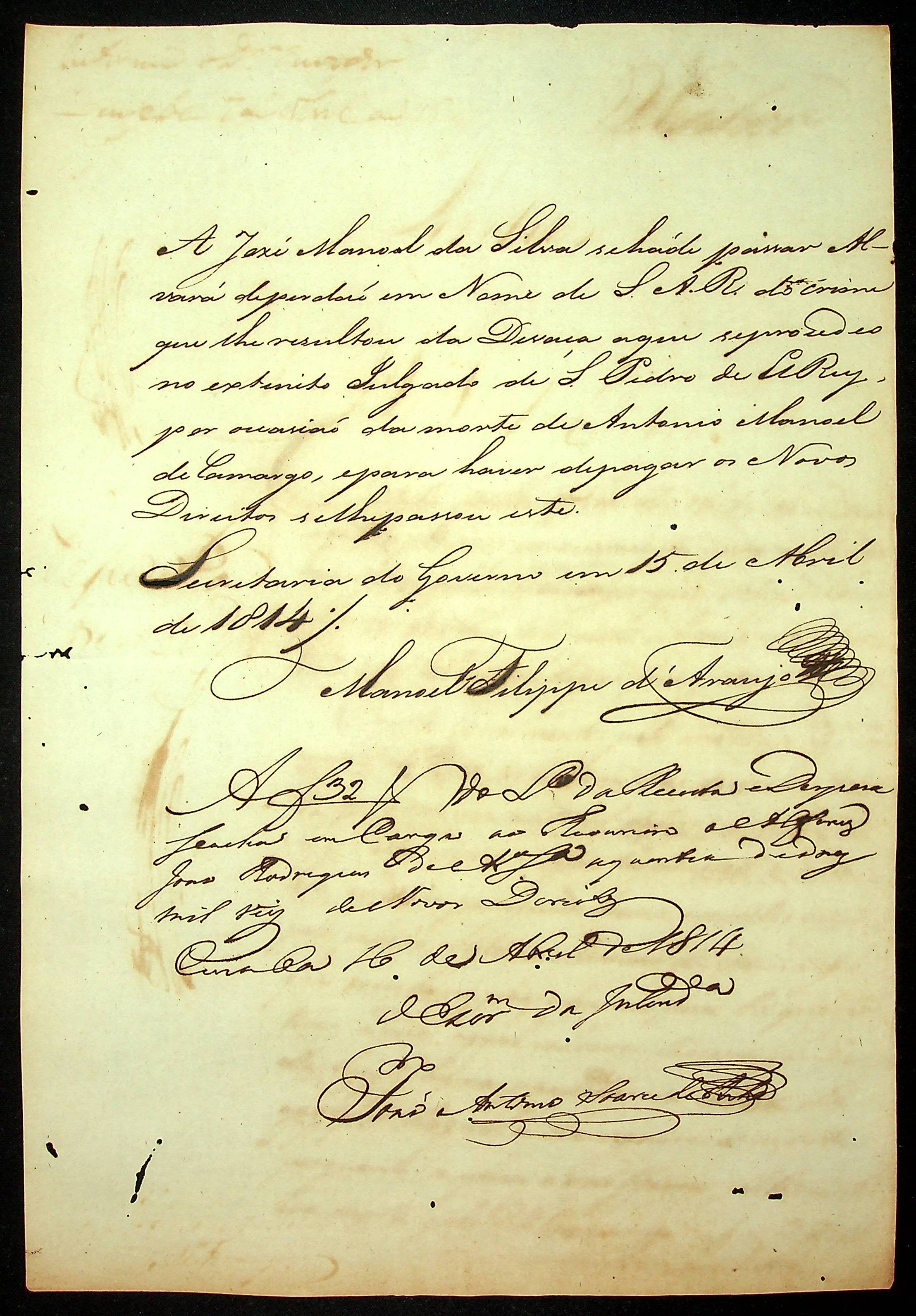 REQUERIMENTO de José Manoel da Silva ao [Governador e Capitão-General da Capitania de Mato Grosso João Carlos Augusto D´Oeynhausen e Gravemberg].