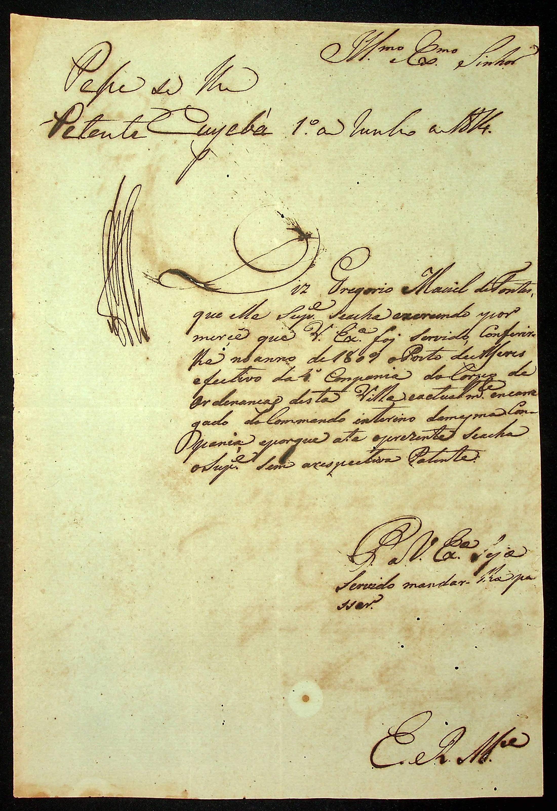REQUERIMENTO de Gregório Maciel de Fontes ao [Governador e Capitão-General da Capitania de Mato Grosso João Carlos Augusto D´Oeynhausen e Gravemberg].