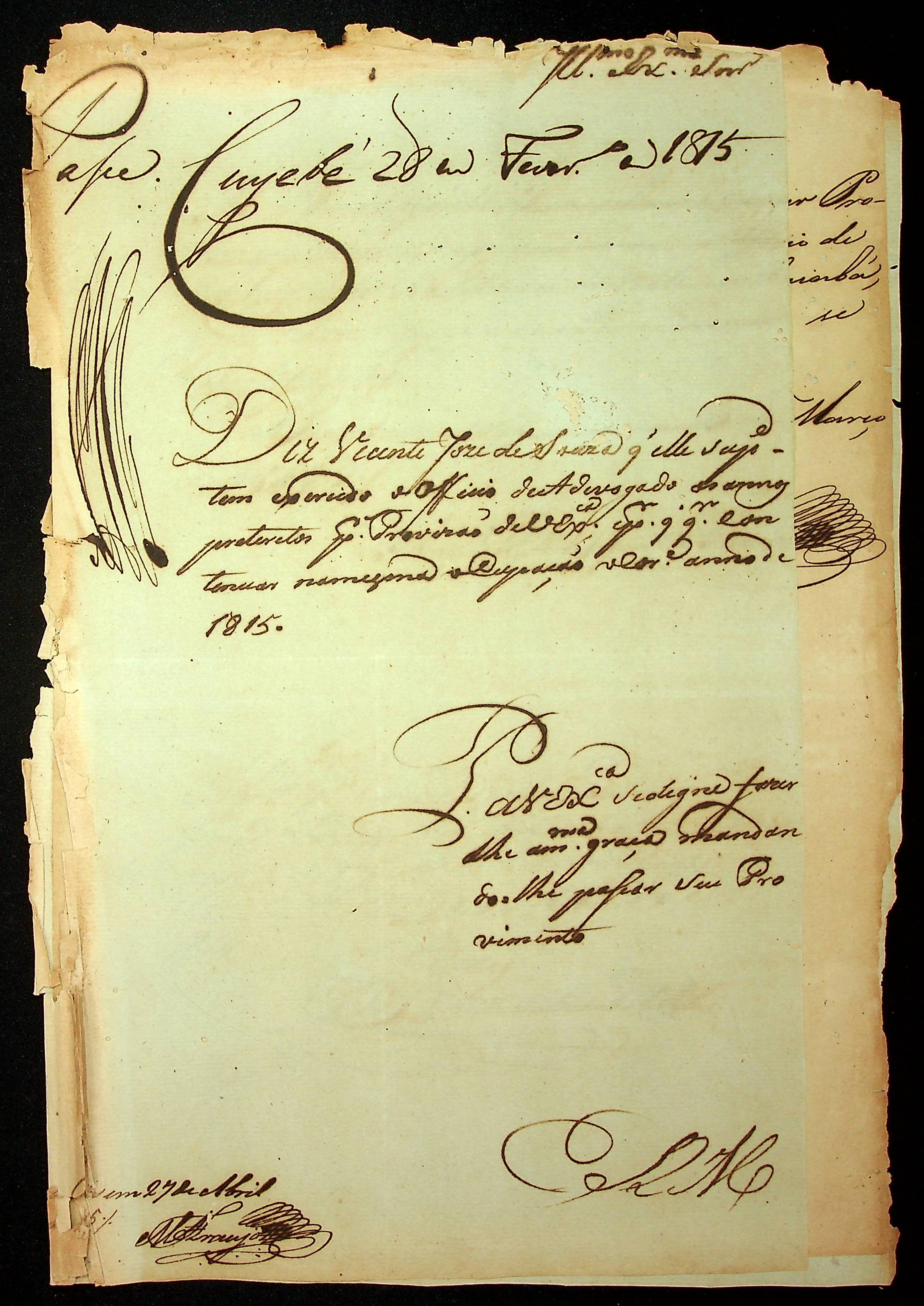 REQUERIMENTO de Vicente José de Souza ao [Governador e Capitão-General da Capitania de Mato Grosso João Carlos Augusto D´Oeynhausen e Gravemberg].
