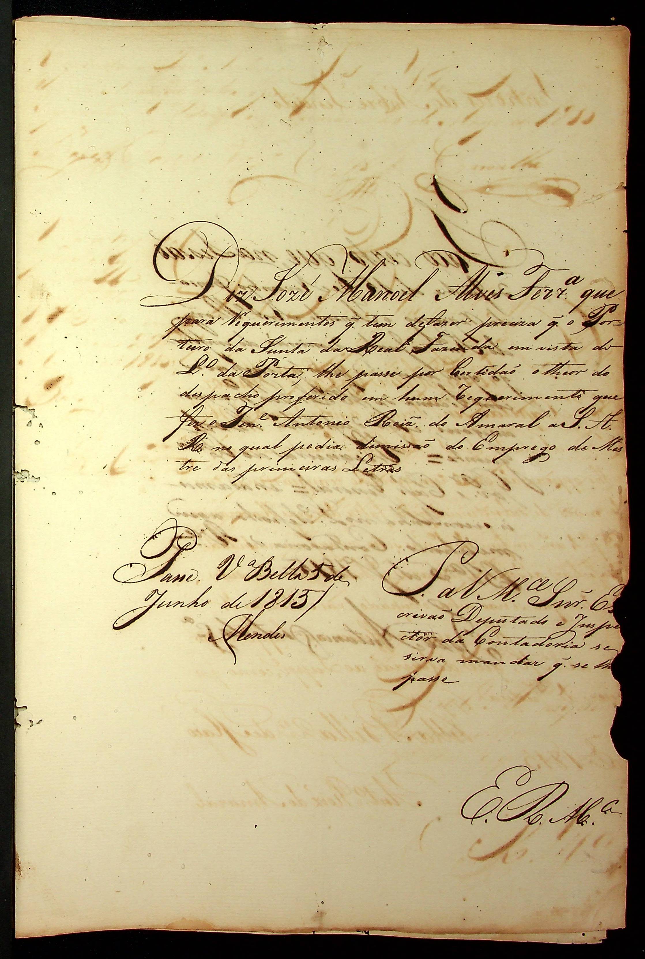 REQUERIMENTO de José Manoel Alves Ferreira ao [Governador e Capitão-General da Capitania de Mato Grosso João Carlos Augusto D´Oeynhausen e Gravemberg].