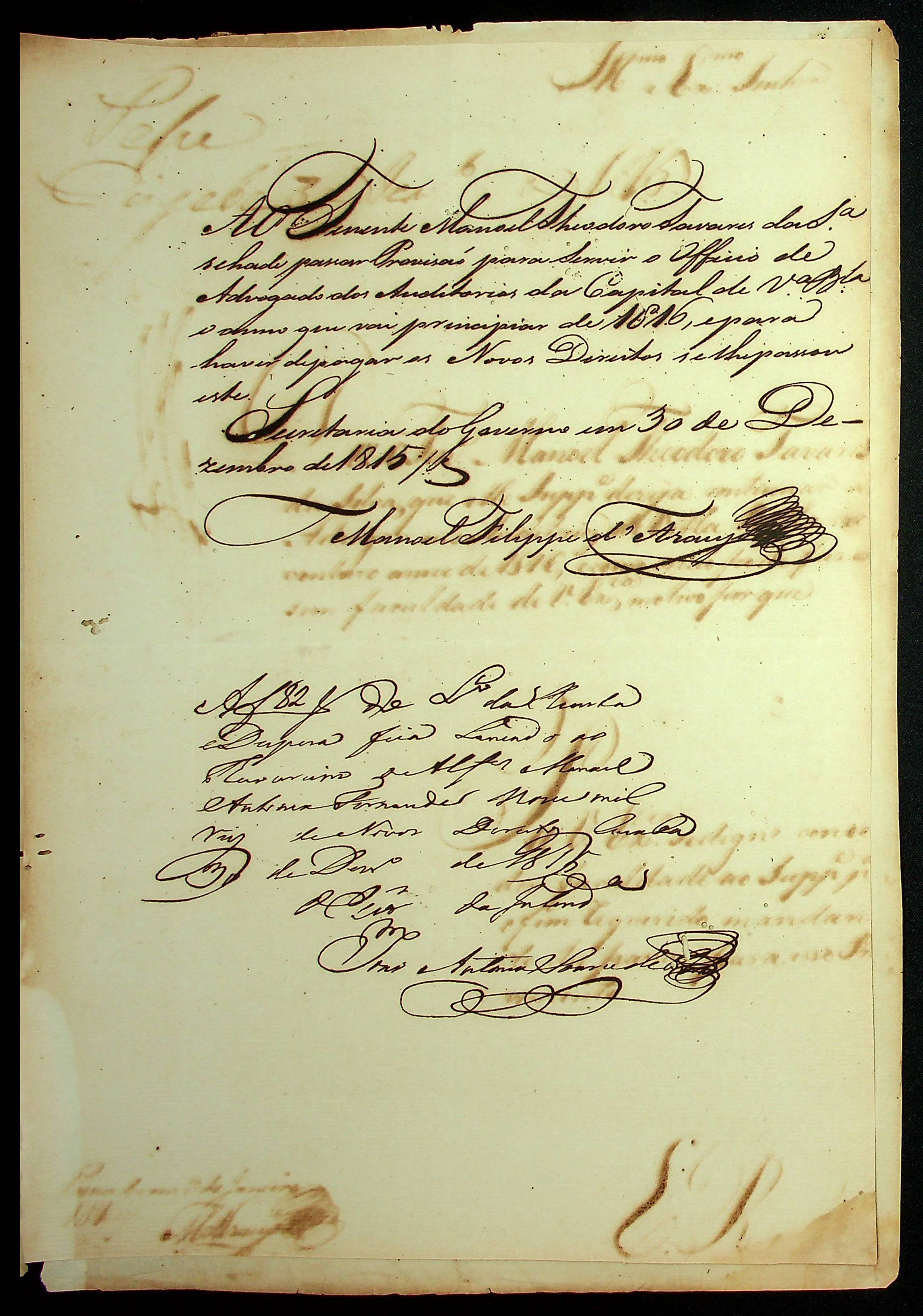REQUERIMENTO do Tenente Manoel Theodoro Tavares ao [Governador e Capitão General da Capitania de Mato Grosso] João Carlos Augusto D' Oeynhausen e Gravemberg.