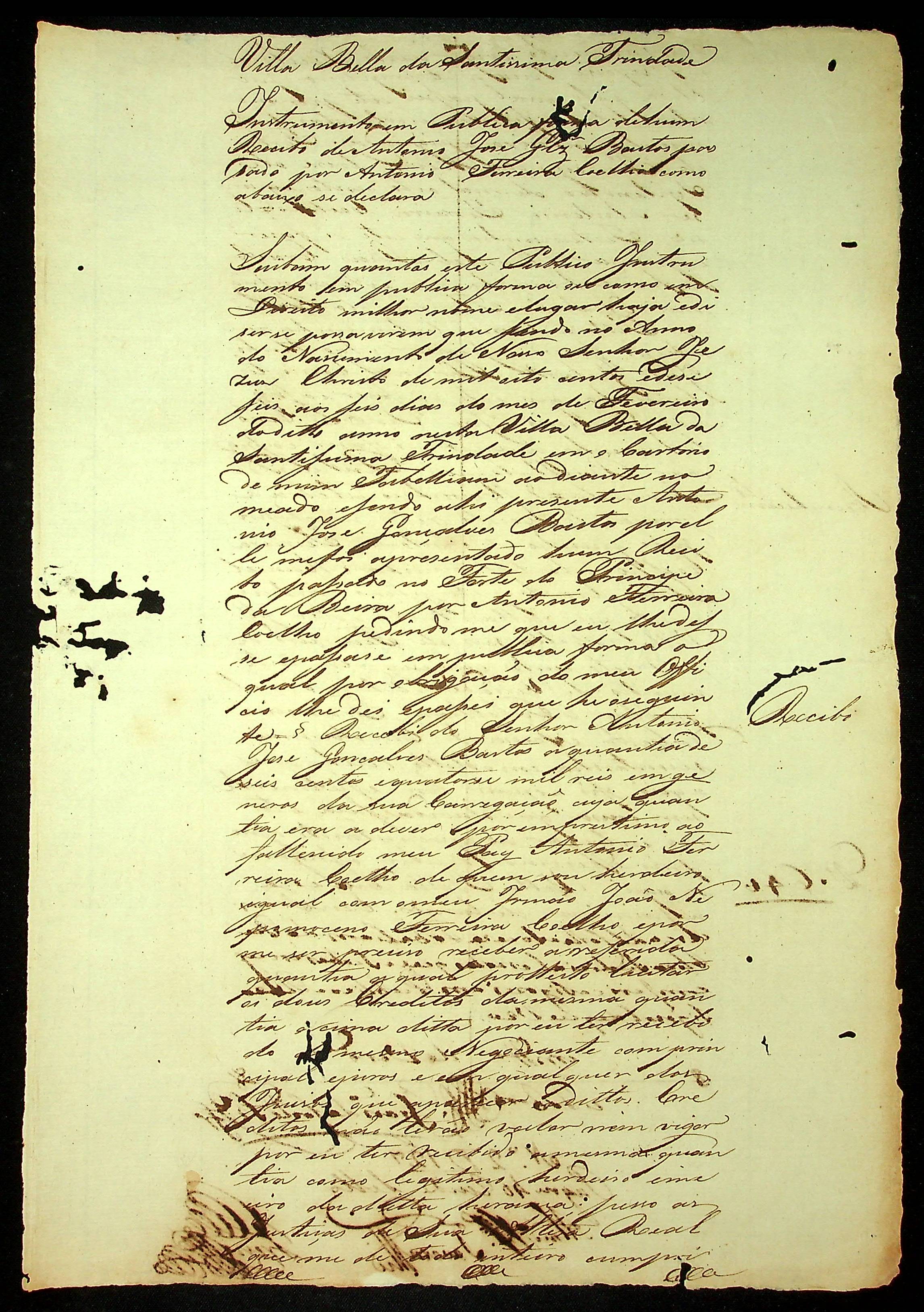 REQUERIMENTO do Soldado Dragão de Vila Bela João Nepomuceno Ferreira Coelho ao [Governador e Capitão-General da Capitania de Mato Grosso João Carlos Augusto D´Oeynhausen e Gravemberg].