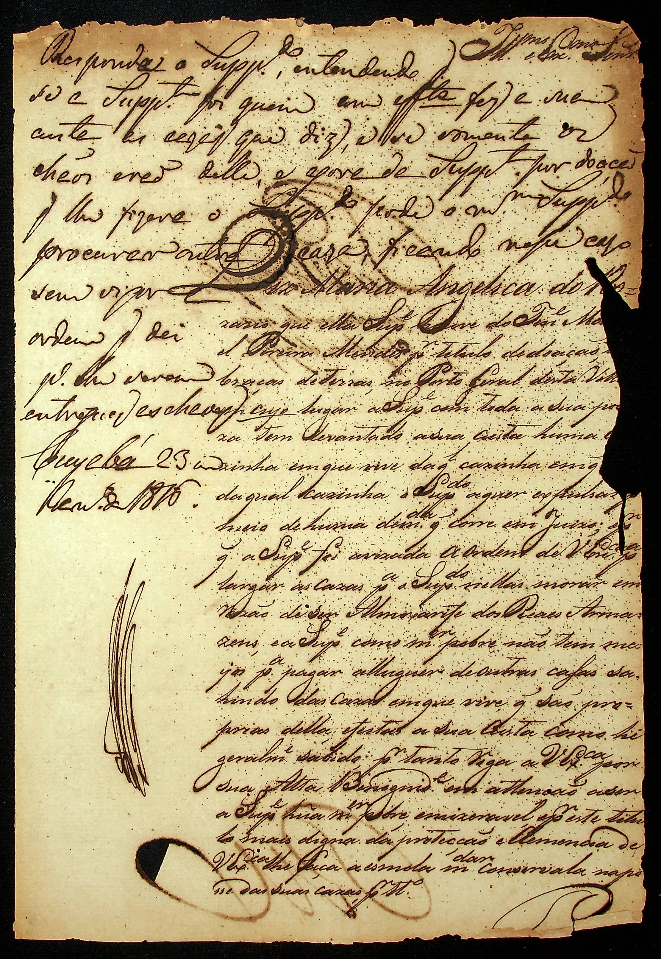 REQUERIMENTO de Maria Angélica do Rozário ao [Governador e Capitão-General da Capitania de Mato Grosso João Carlos Augusto D´Oeynhausen e Gravemberg].