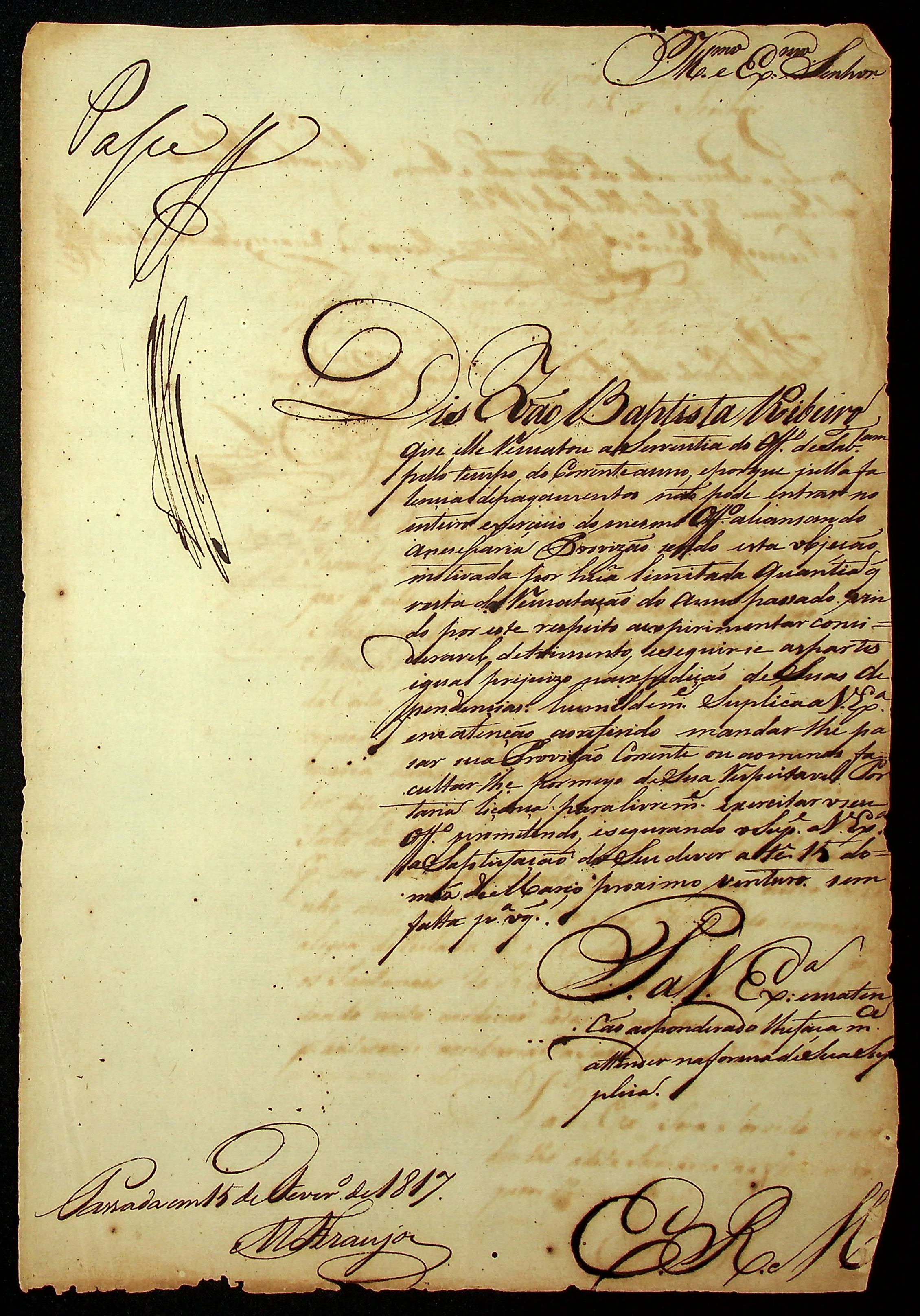 REQUERIMENTO de João Batista Ribeiro ao [Governador e Capitão-General da Capitania de Mato Grosso João Carlos Augusto D´Oeynhausen e Gravemberg].