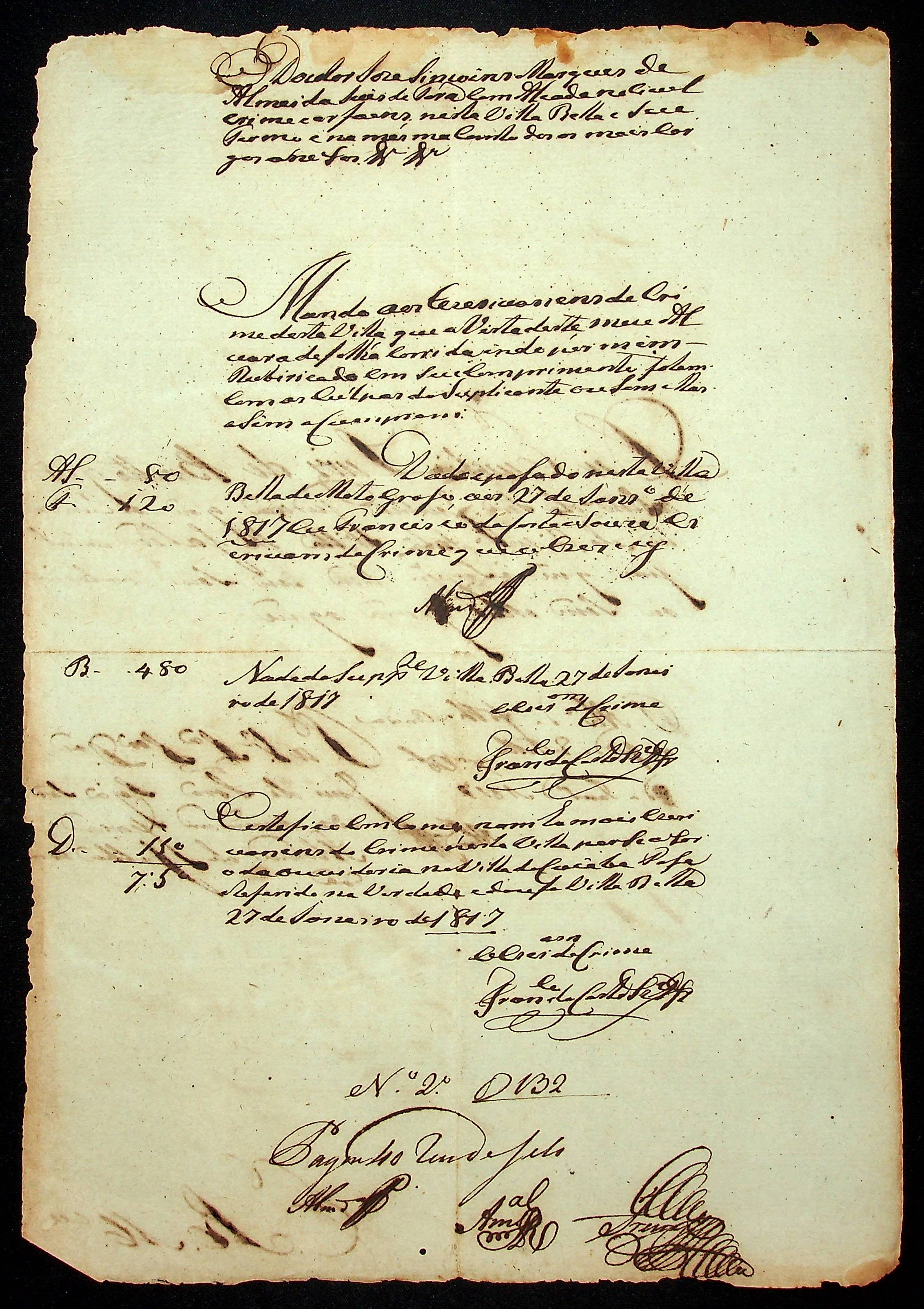 REQUERIMENTO de Eusébio Luís de Brito ao [Governador e Capitão-General da Capitania de Mato Grosso João Carlos Augusto D´Oeynhausen e Gravemberg].