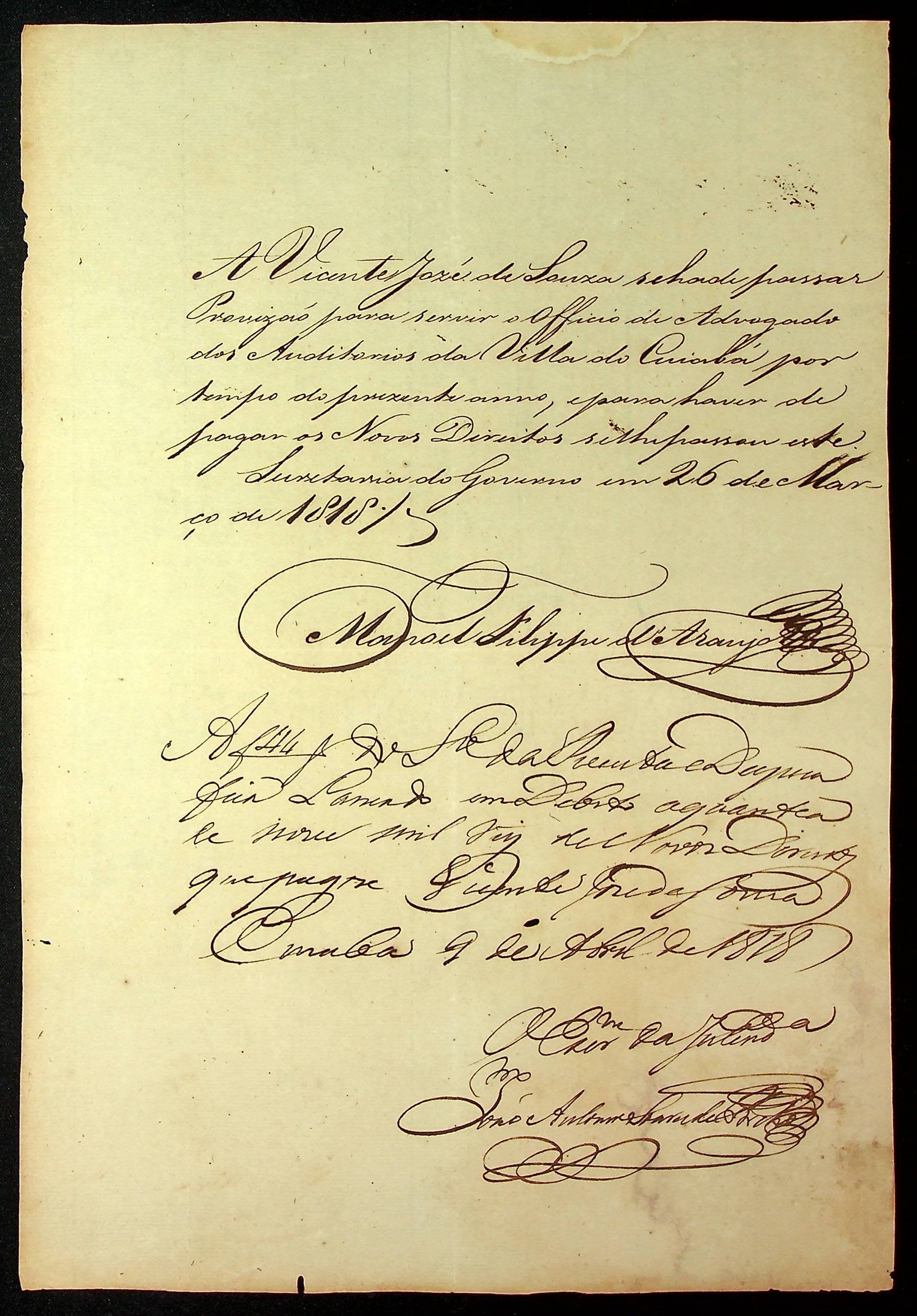 REQUERIMENTO de Vicente José de Souza ao [Governador e Capitão-General da Capitania de Mato Grosso João Carlos Augusto D´Oeynhausen e Gravemberg].