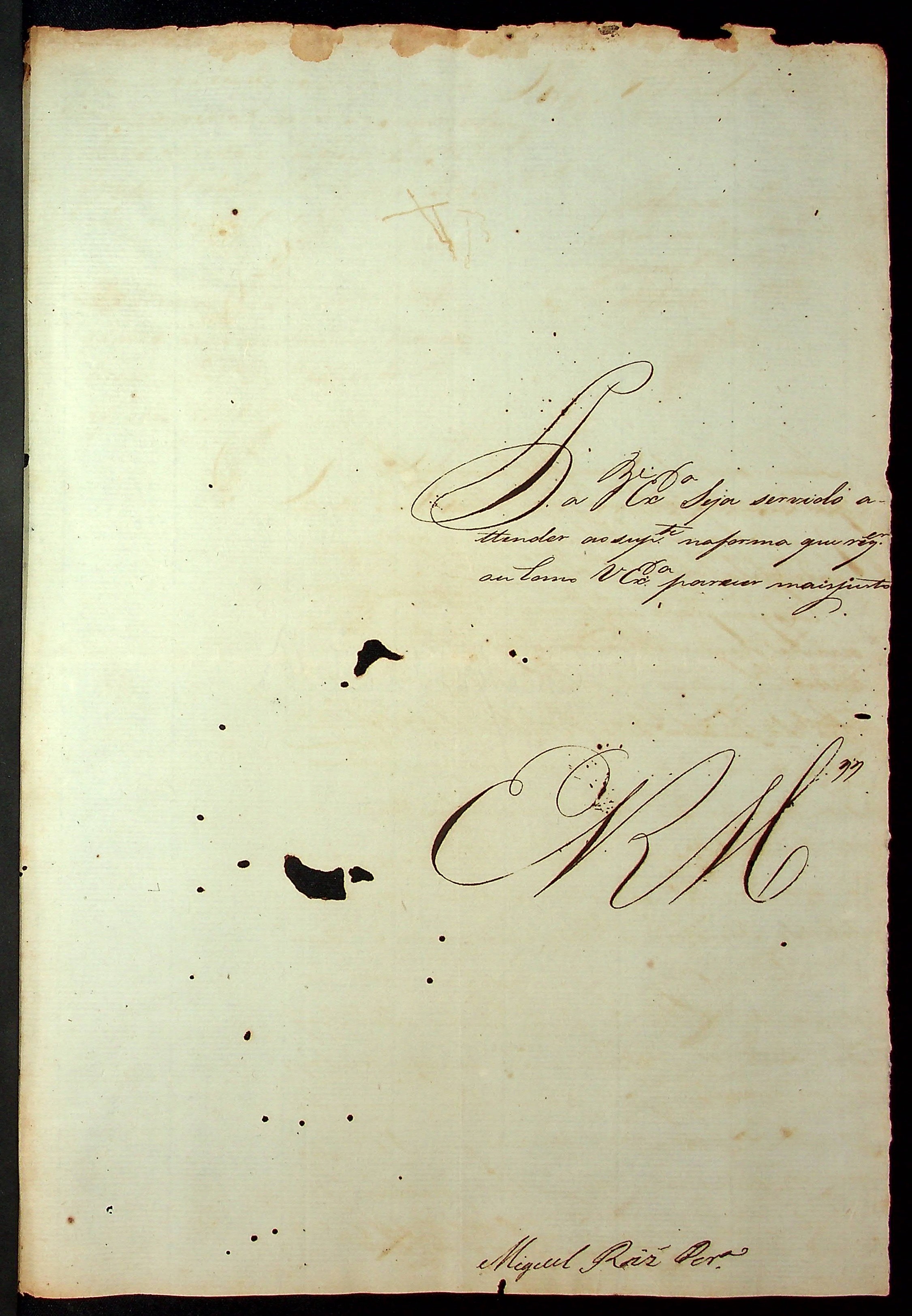 REQUERIMENTO de Miguel Rodrigues Pereira ao [Governador e Capitão General da Capitania de Mato Grosso Francisco de Paula Magessi Tavares de Carvalho].