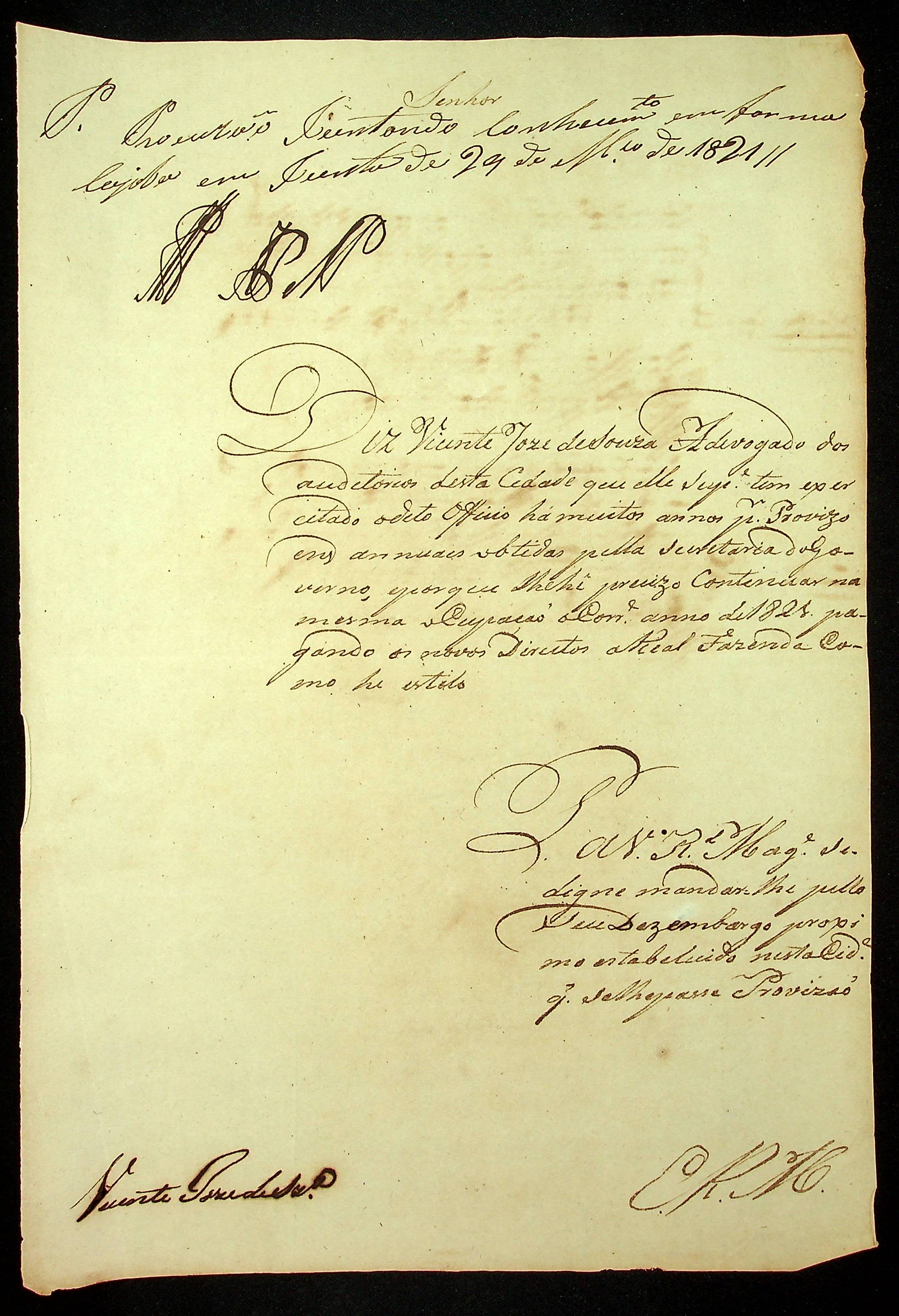 REQUERIMENTO do Advogado Vicente José de Souza ao [Governador e Capitão General da Capitania de Mato Grosso Francisco de Paula Magessi Tavares de Carvalho].