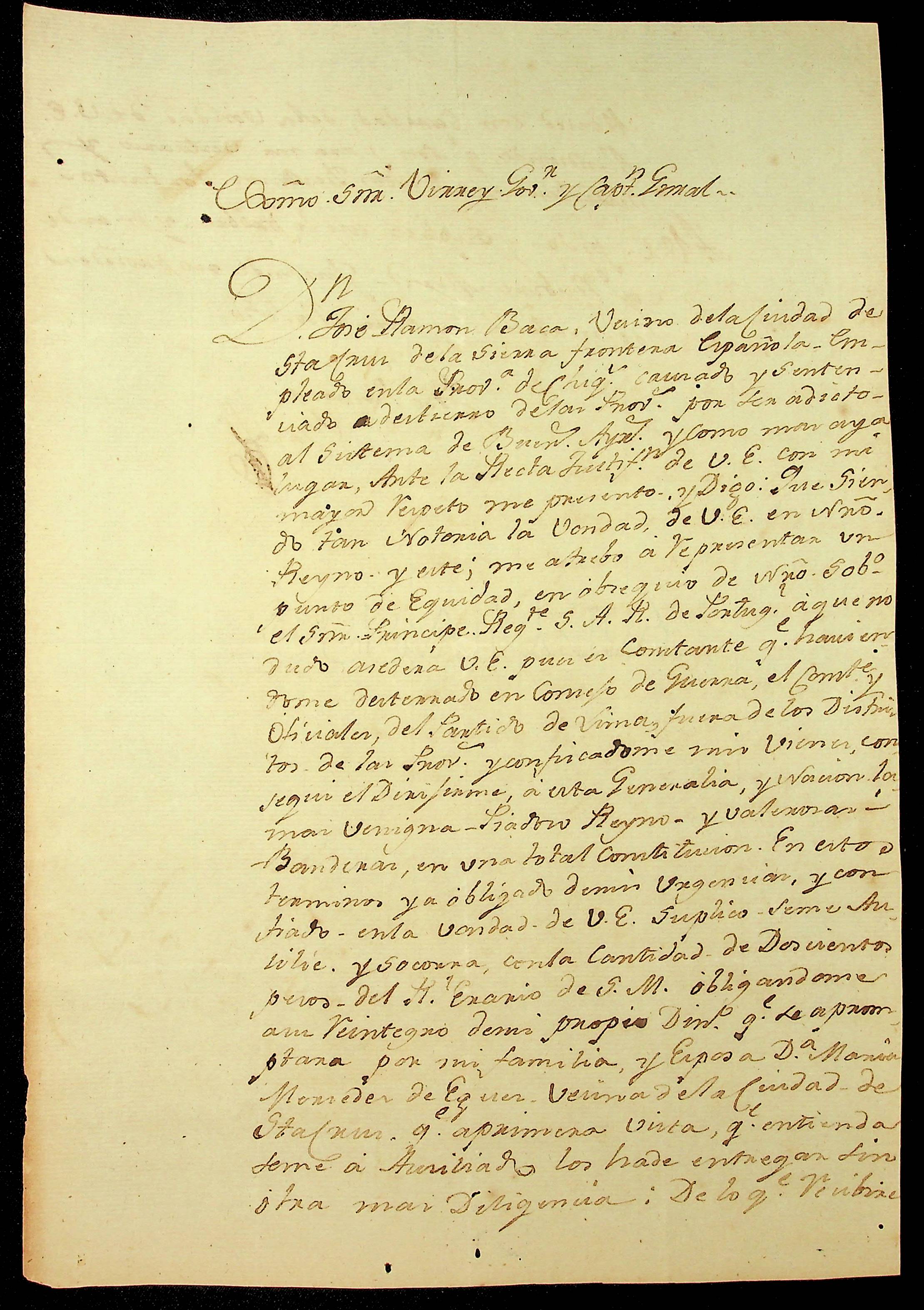 REQUERIMENTO de José Ramon Baca ao [Governador e Capitão General da Capitania de Mato Grosso].