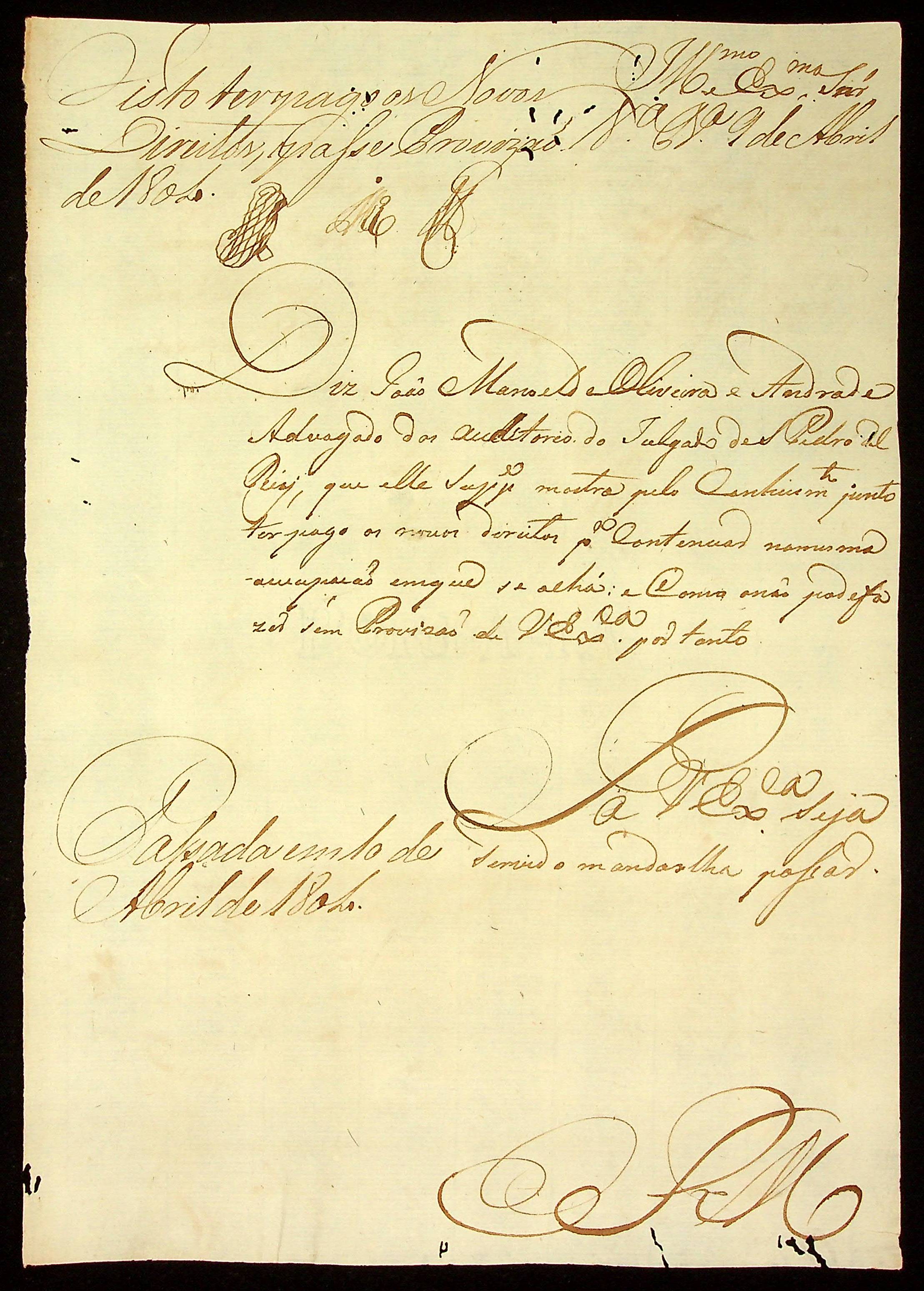 REQUERIMENTO de Manoel Oliveira e Andrade à [Segunda Junta Governativa da Capitania de Mato Grosso].