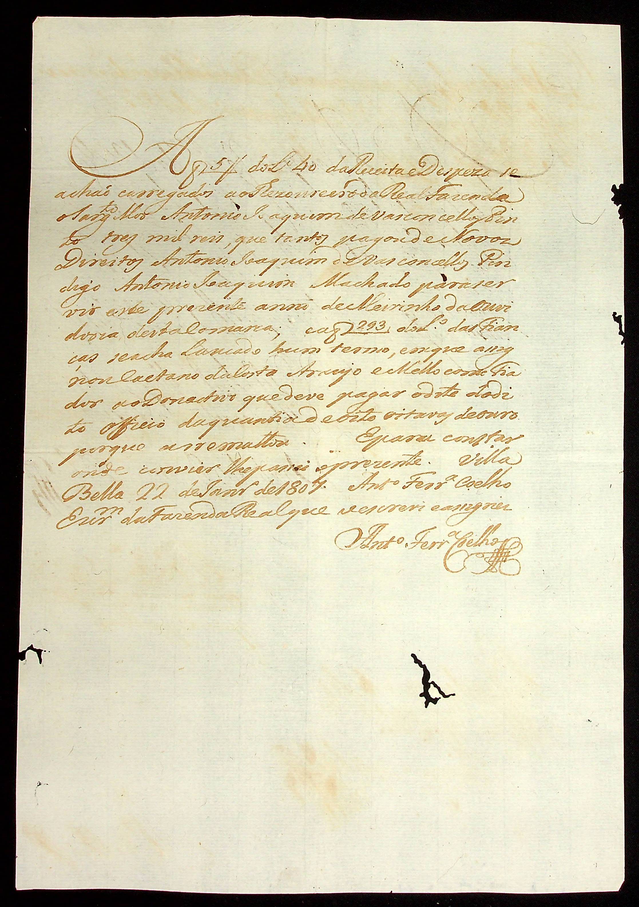 REQUERIMENTO de Antônio Joaquim da Silva Machado à [Terceira Junta Governativa da Capitania de Mato Grosso].
