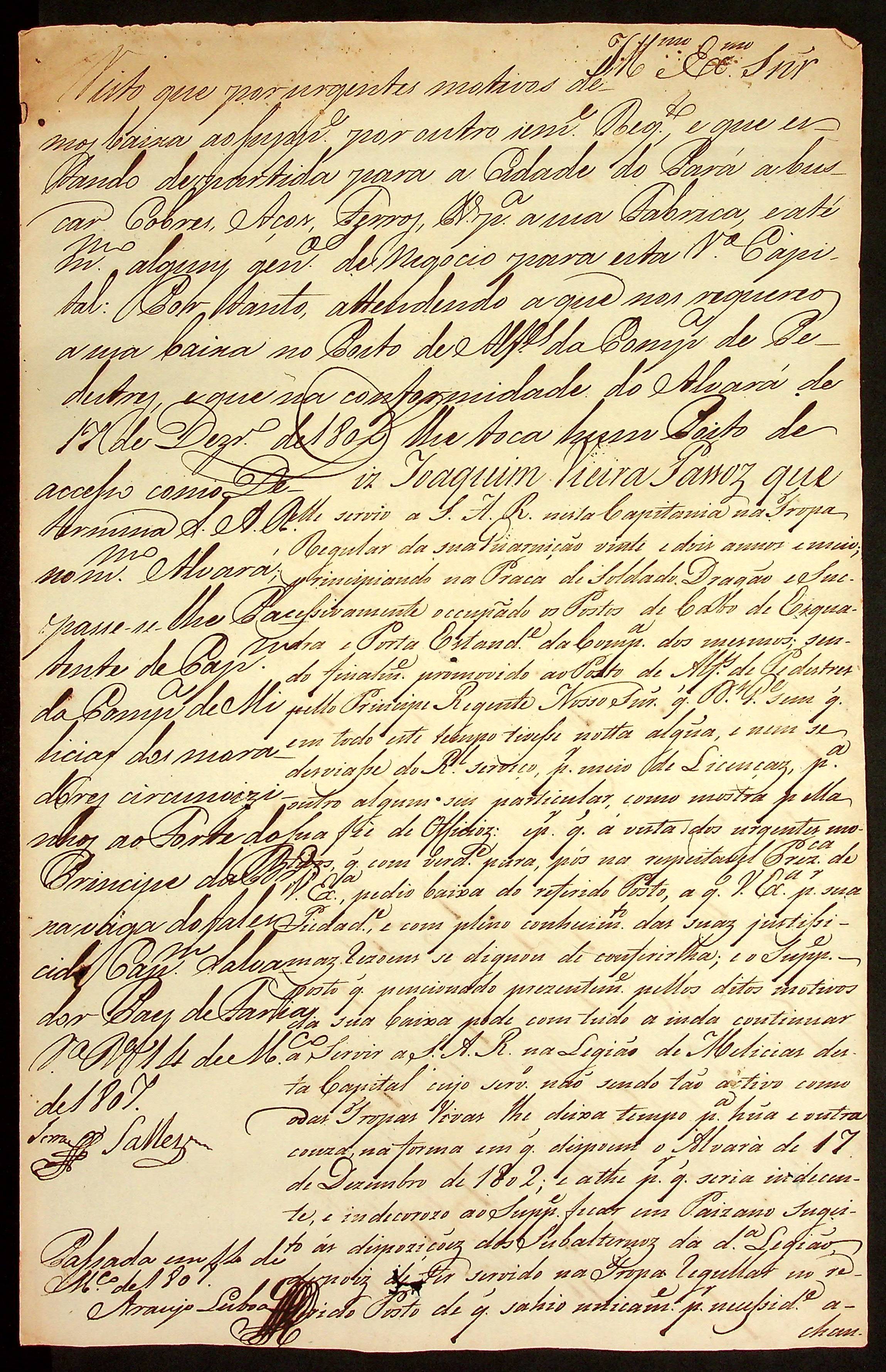 REQUERIMENTO do Alferes Comandante Joaquim Vieira Passos à [Terceira Junta Governativa da Capitania de Mato Grosso].