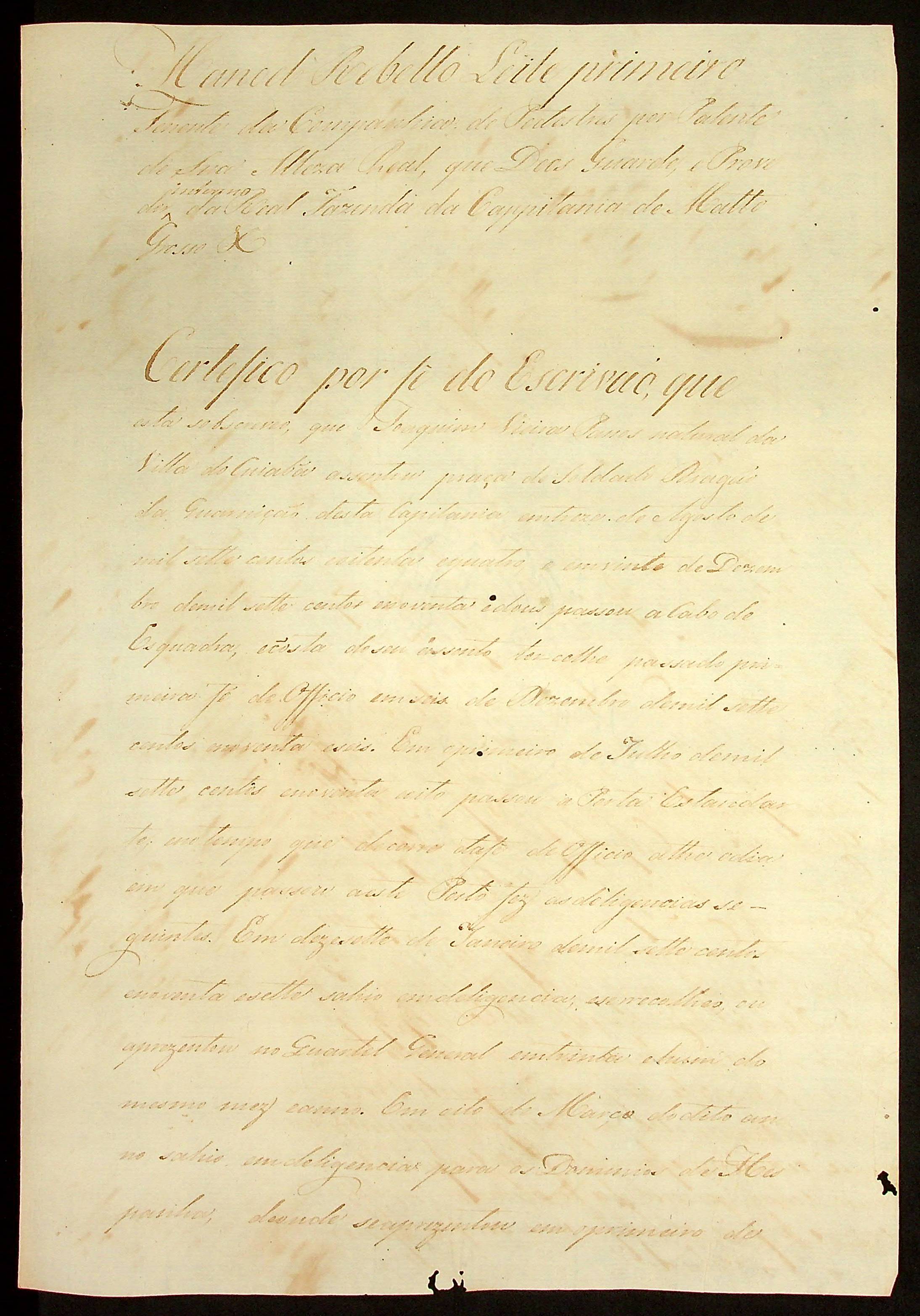 REQUERIMENTO do Alferes Comandante Joaquim Vieira Passos à [Terceira Junta Governativa da Capitania de Mato Grosso].