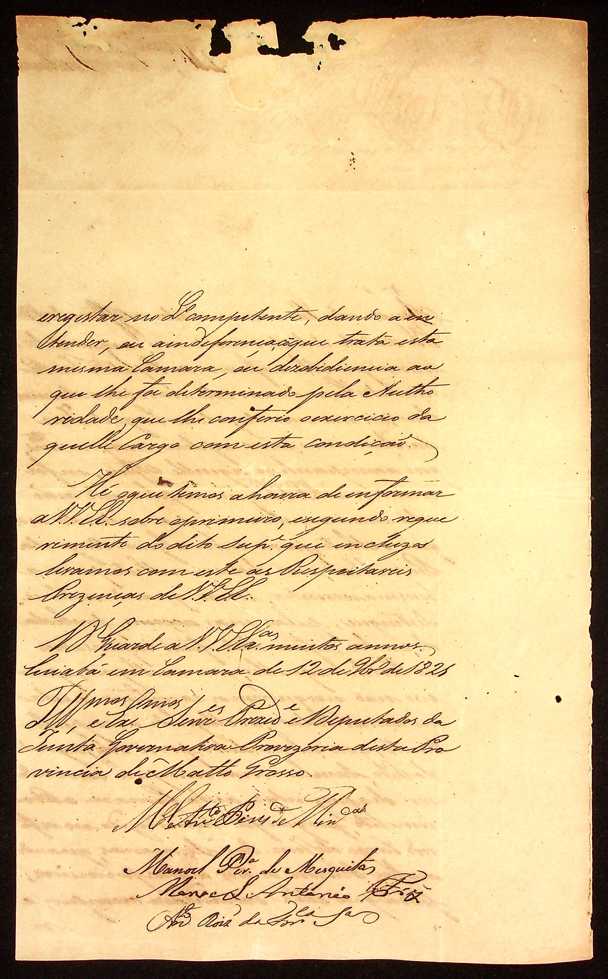 REQUERIMENTO do Juiz das Sesmaria o Capitão José Pereira dos Guimarães à [Junta Governativa Provisória da Província de Mato Grosso].