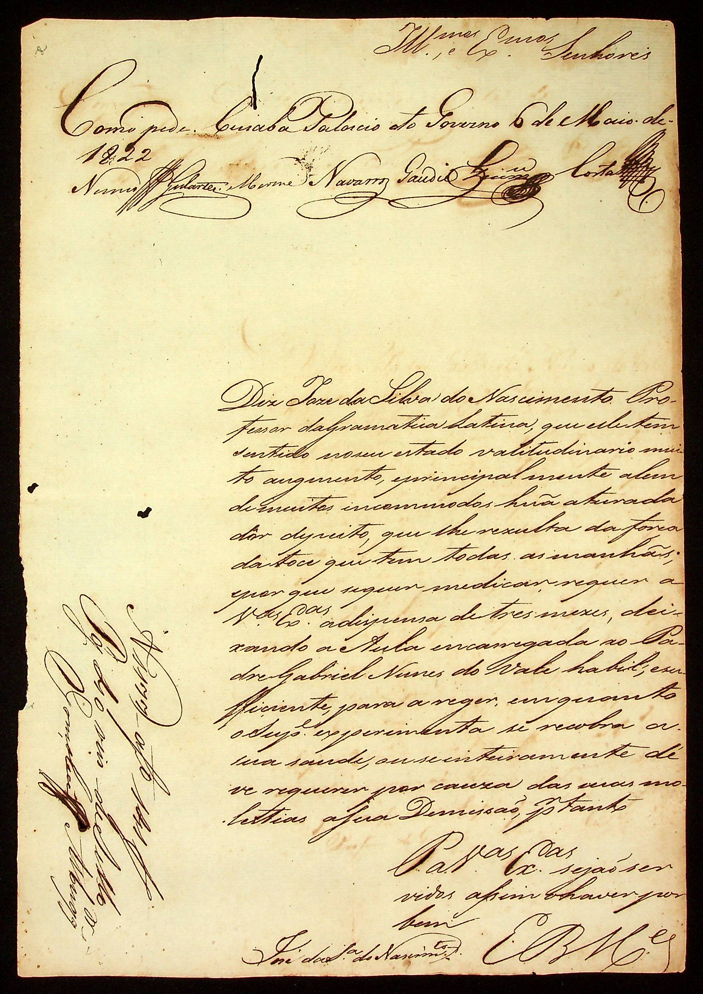 REQUERIMENTO do Professor José da Silva do Nascimento à [Junta Governativa Provisória da Província de Mato Grosso].