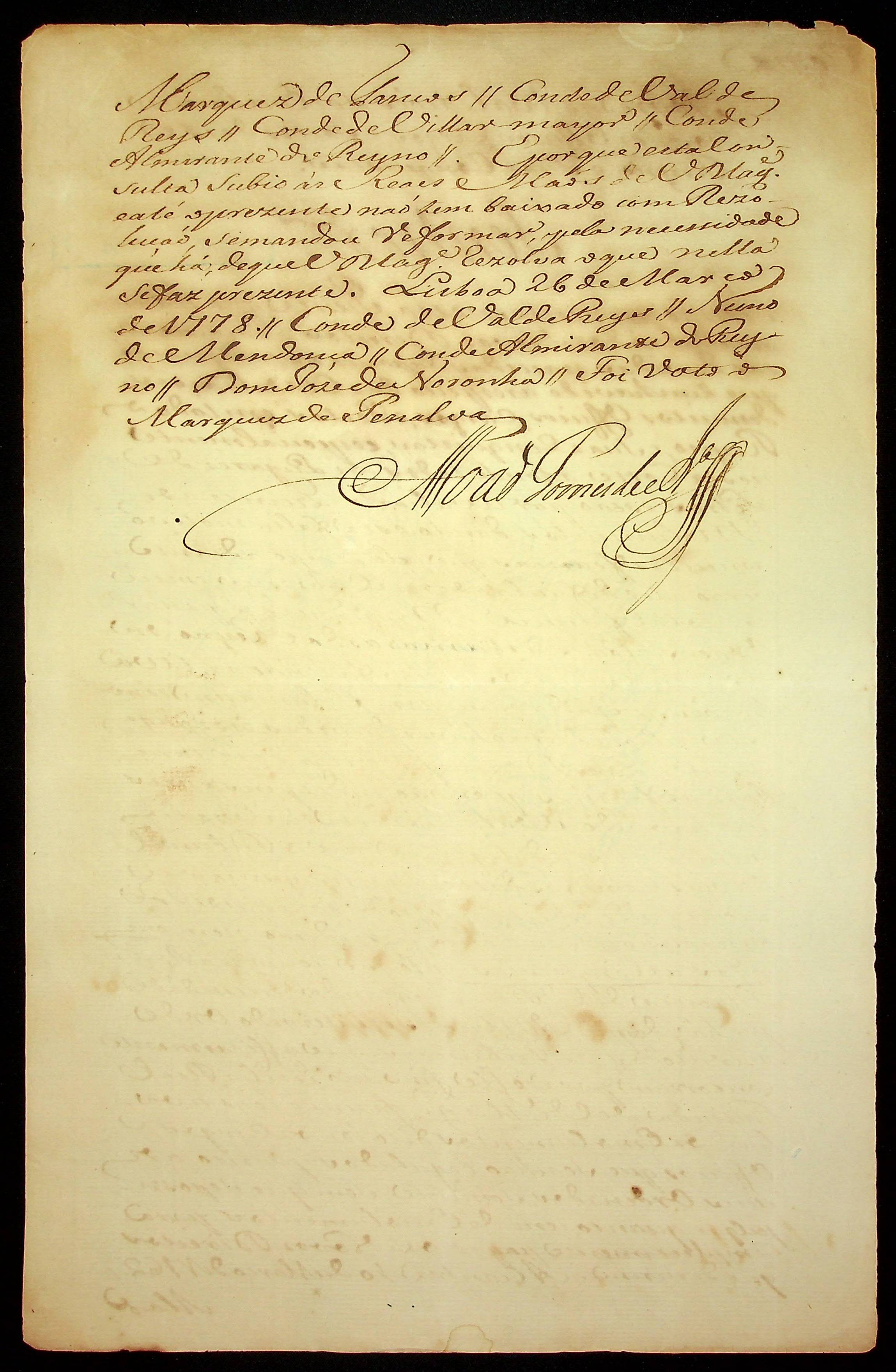 RESOLUÇÃO (Cópia) passada pelo Rei ordenando sobre as avaliações dos emolumentos dos ofícios, cargos e postos deste reino e suas conquistas.