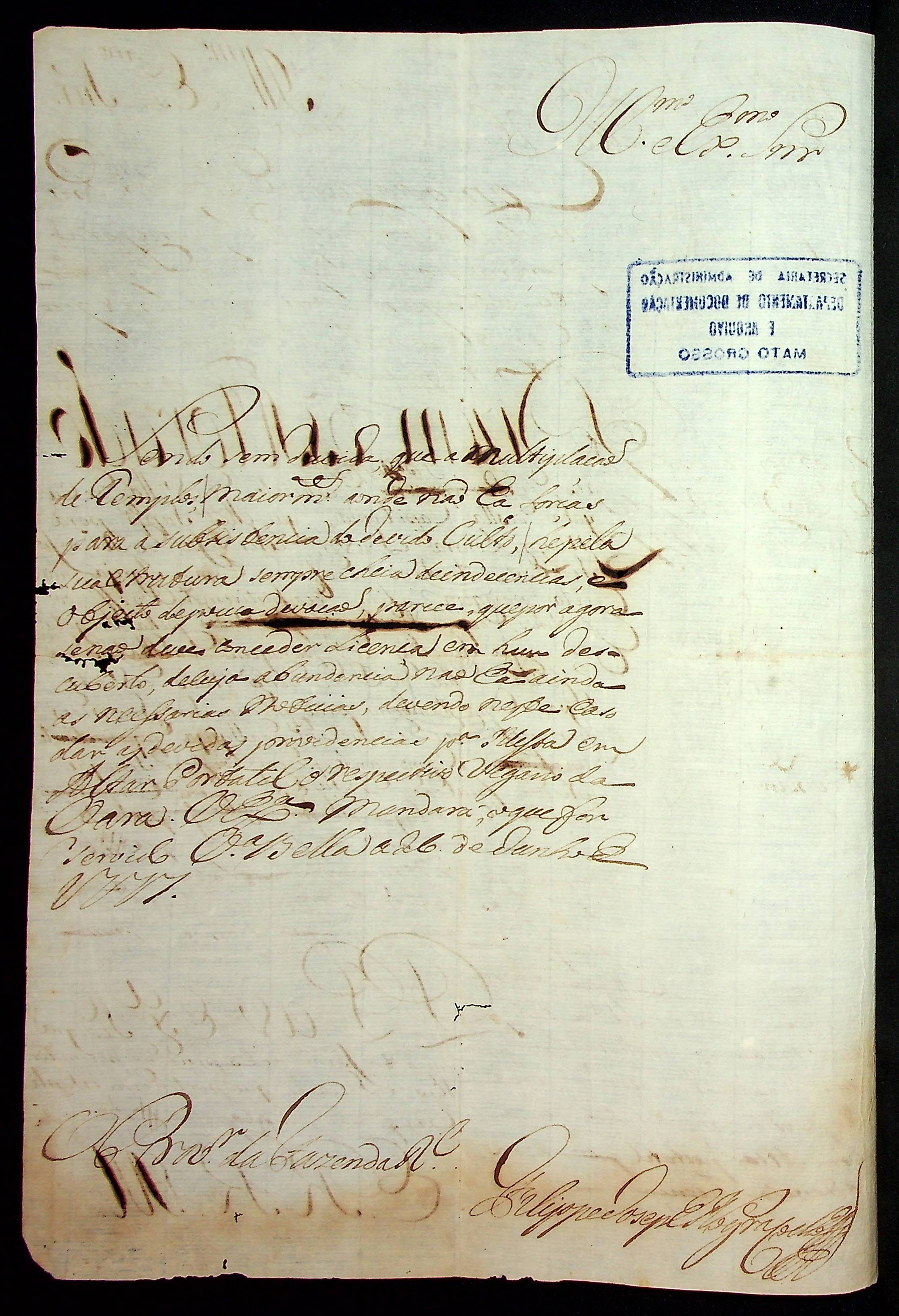 REPRESENTAÇÃO dos moradores do Beripoconé [São Pedro D' El Rei] distrito da Vila do Cuiabá, solicitando permissão para a edificação de uma Igreja no povoado, ao [Governador e Capitão General da Capitania de Mato Grosso Luiz de Albuquerque de Melo Pereira e Cáceres].