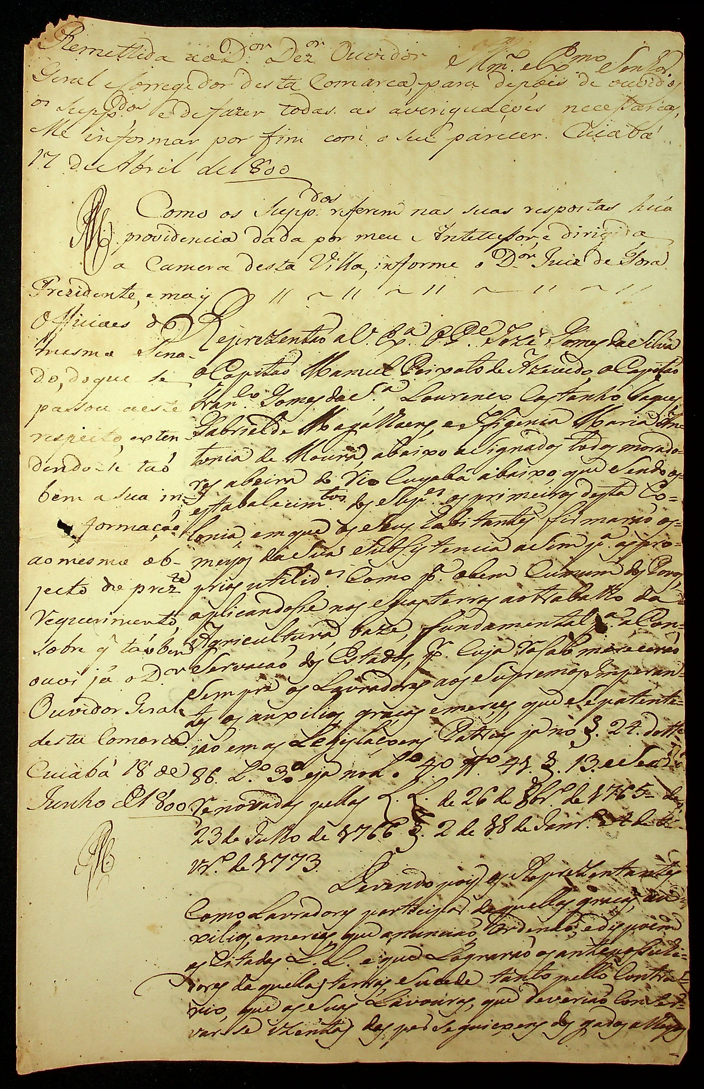 REPRESENTAÇÃO de Moradores do Rio Cuiabá Abaixo ao [Governador e Capitão General da Capitania de Mato Grosso Caetano Pinto de Miranda Montenegro].