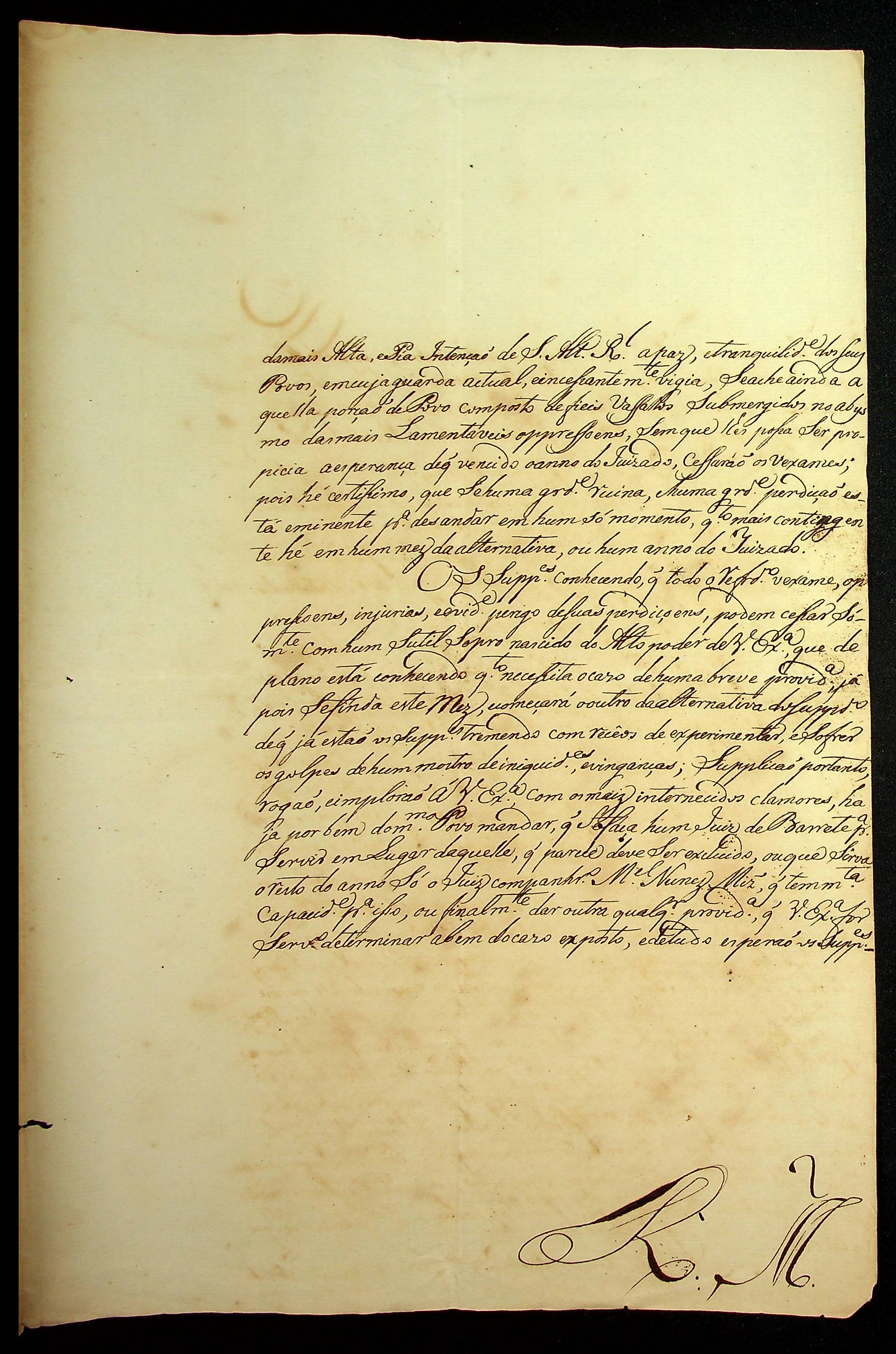 REPRESENTAÇÃO dos Moradores do Arraial e Julgado de São Pedro de El Rei ao [Governador e Capitão-General da Capitania de Mato Grosso] Manoel Carlos de Abreu e Menezes, pedindo providências contra o juiz ordinário.